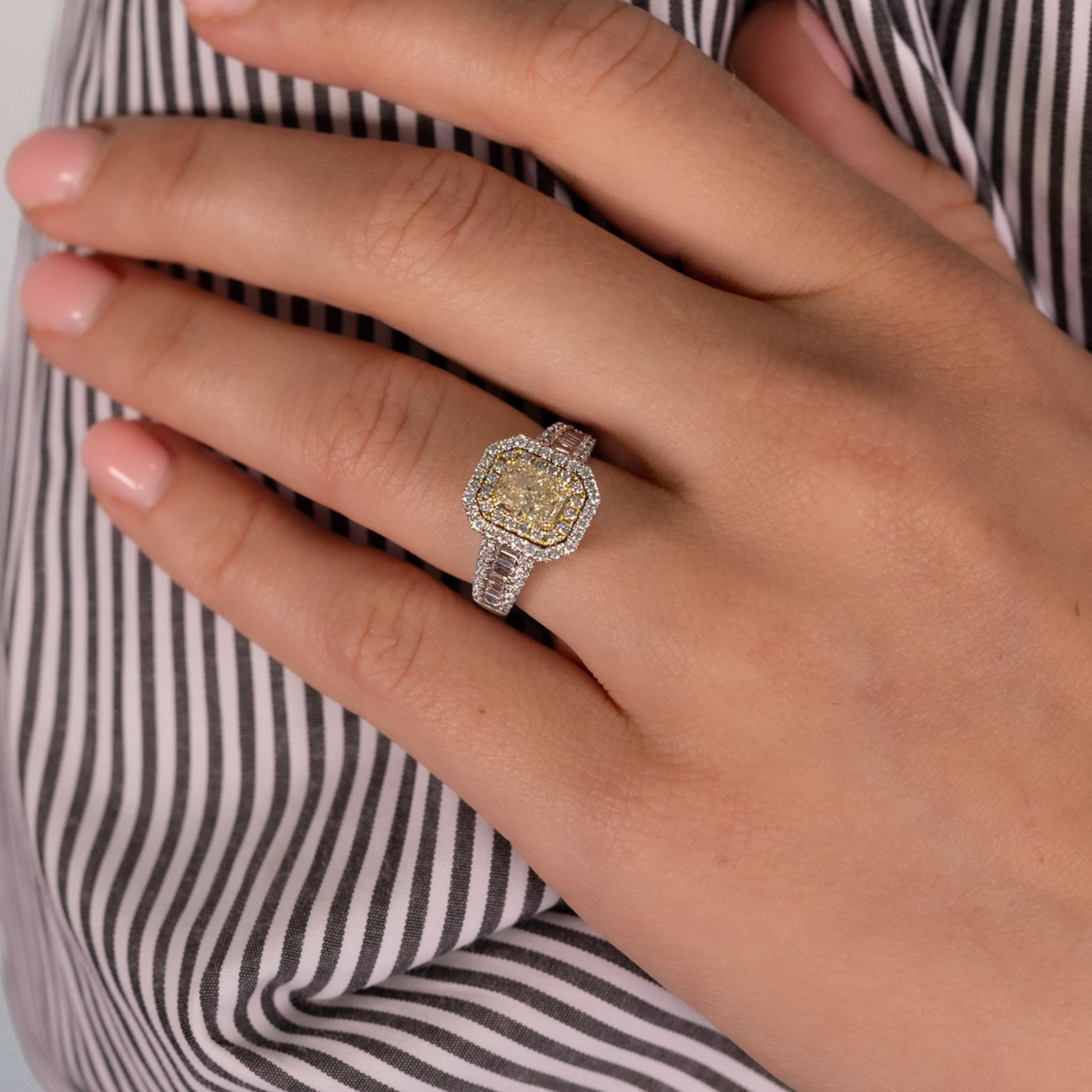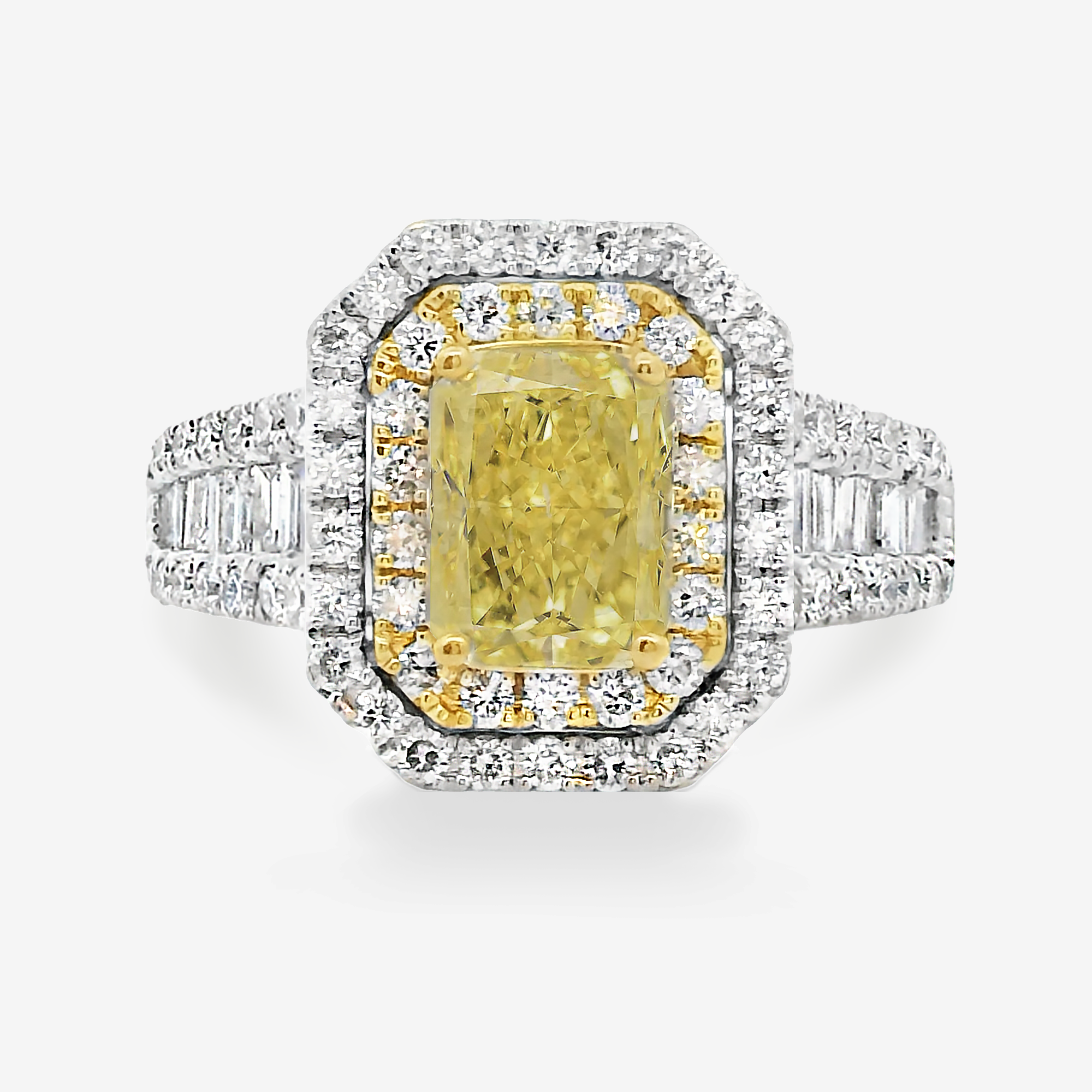 1.32CT Natural Yellow and White Diamond Double Halo Ring