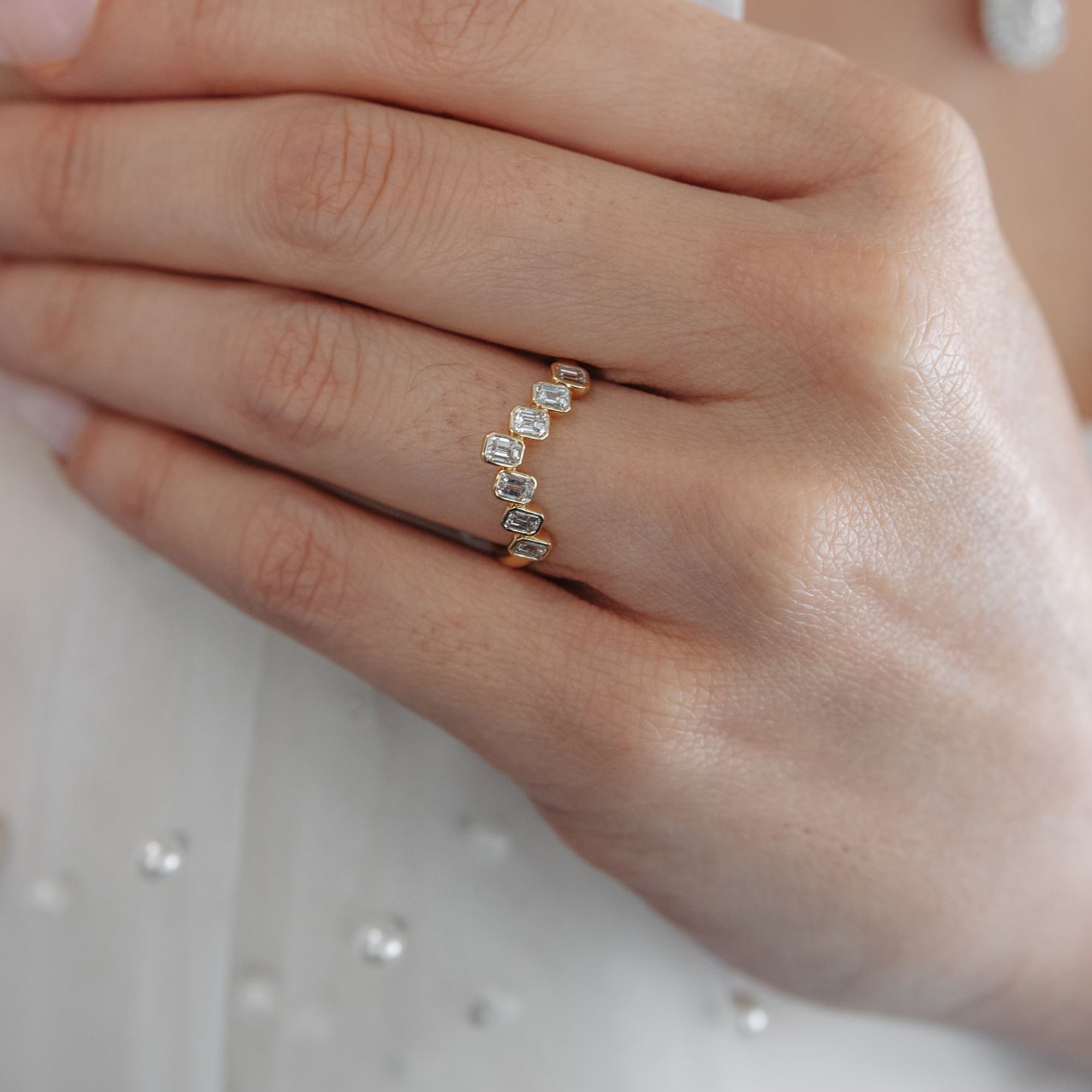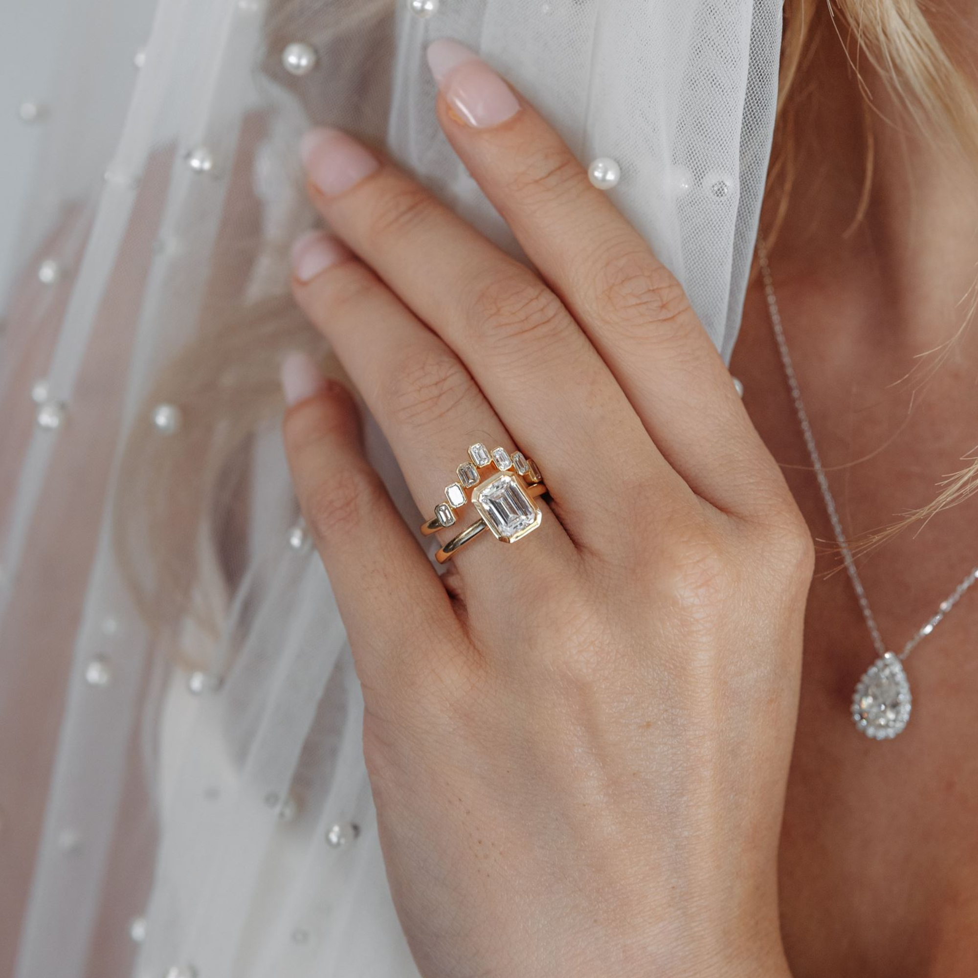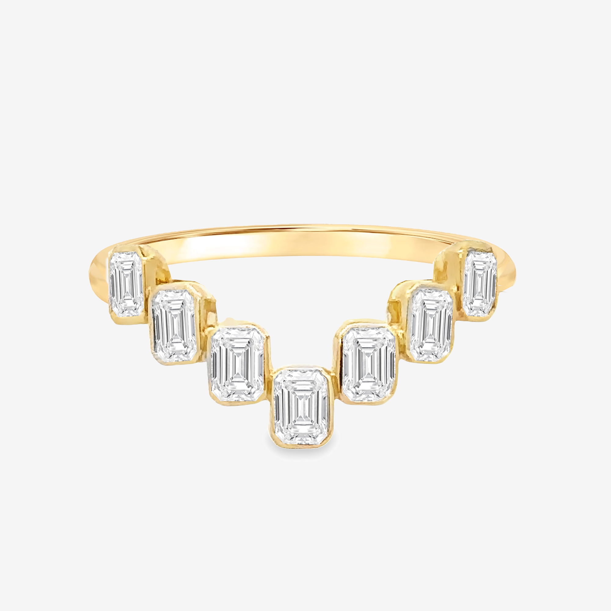 Bezel Set Emerald Cut Diamond Chevron Ring