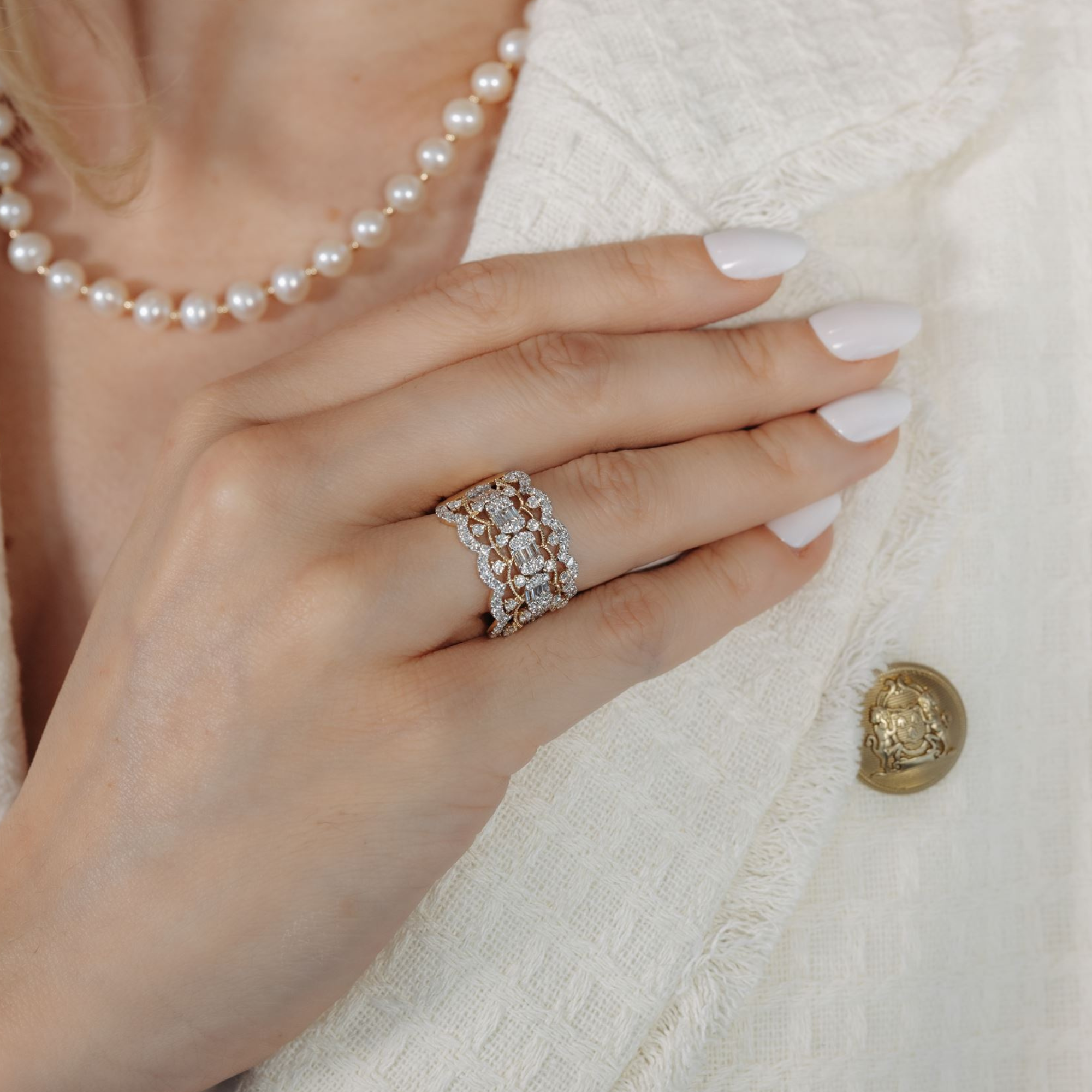 7.5MM 2 Row Curved Diamond Cloud Ring