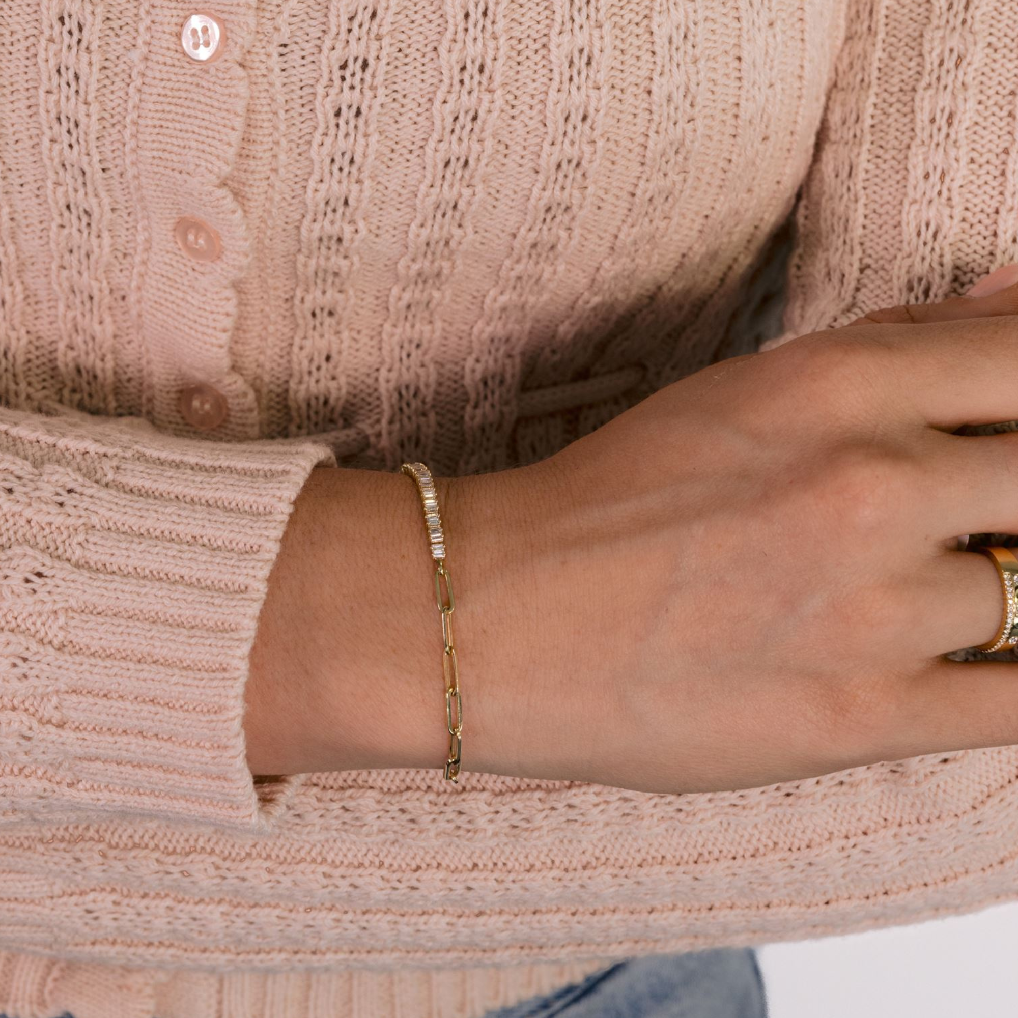 Half & Half Paper Clip 1.45CT Baguette Tennis Bracelet
