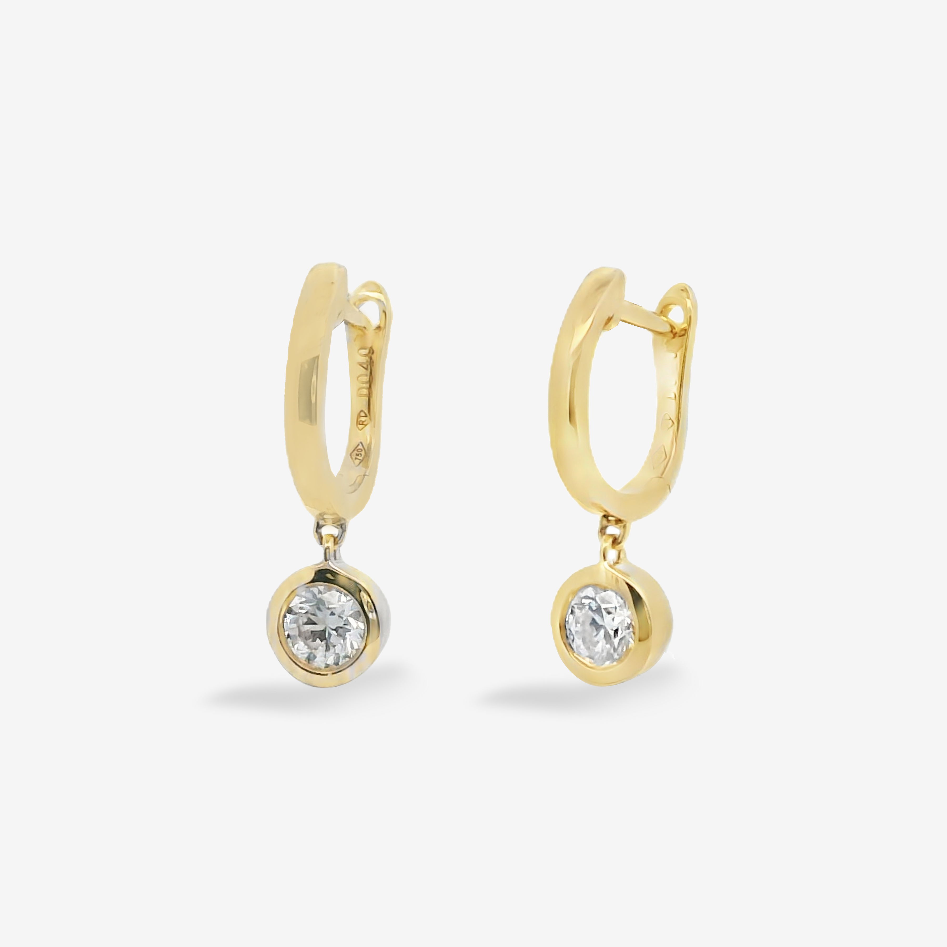 Round & Baguette 0.45CT Diamond Huggie Earrings