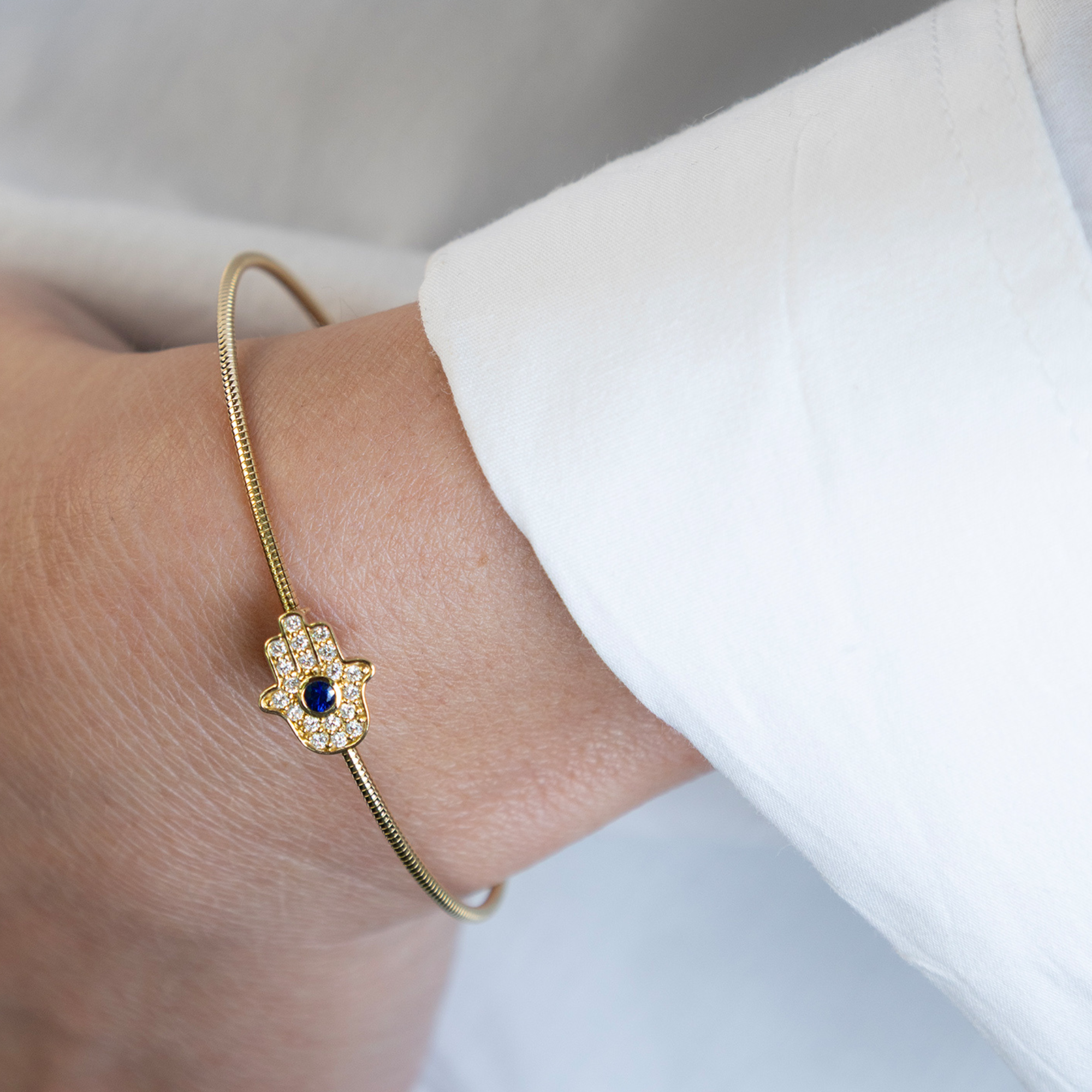 Sapphire & Diamond Hamsa Bangle Bracelet