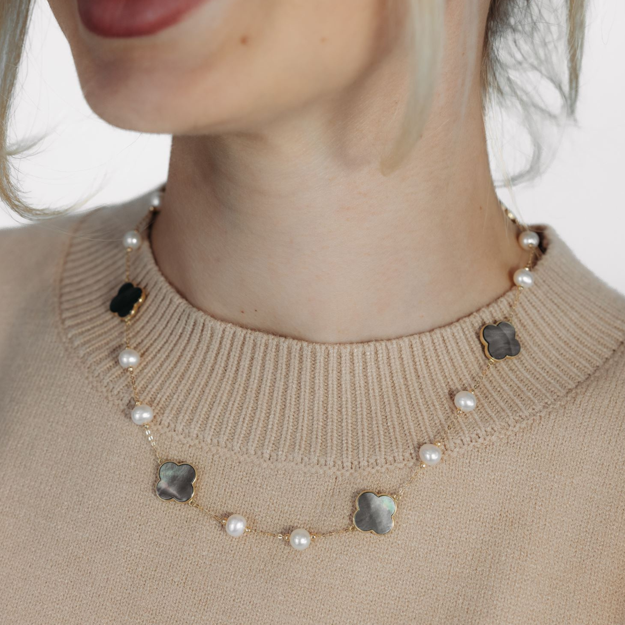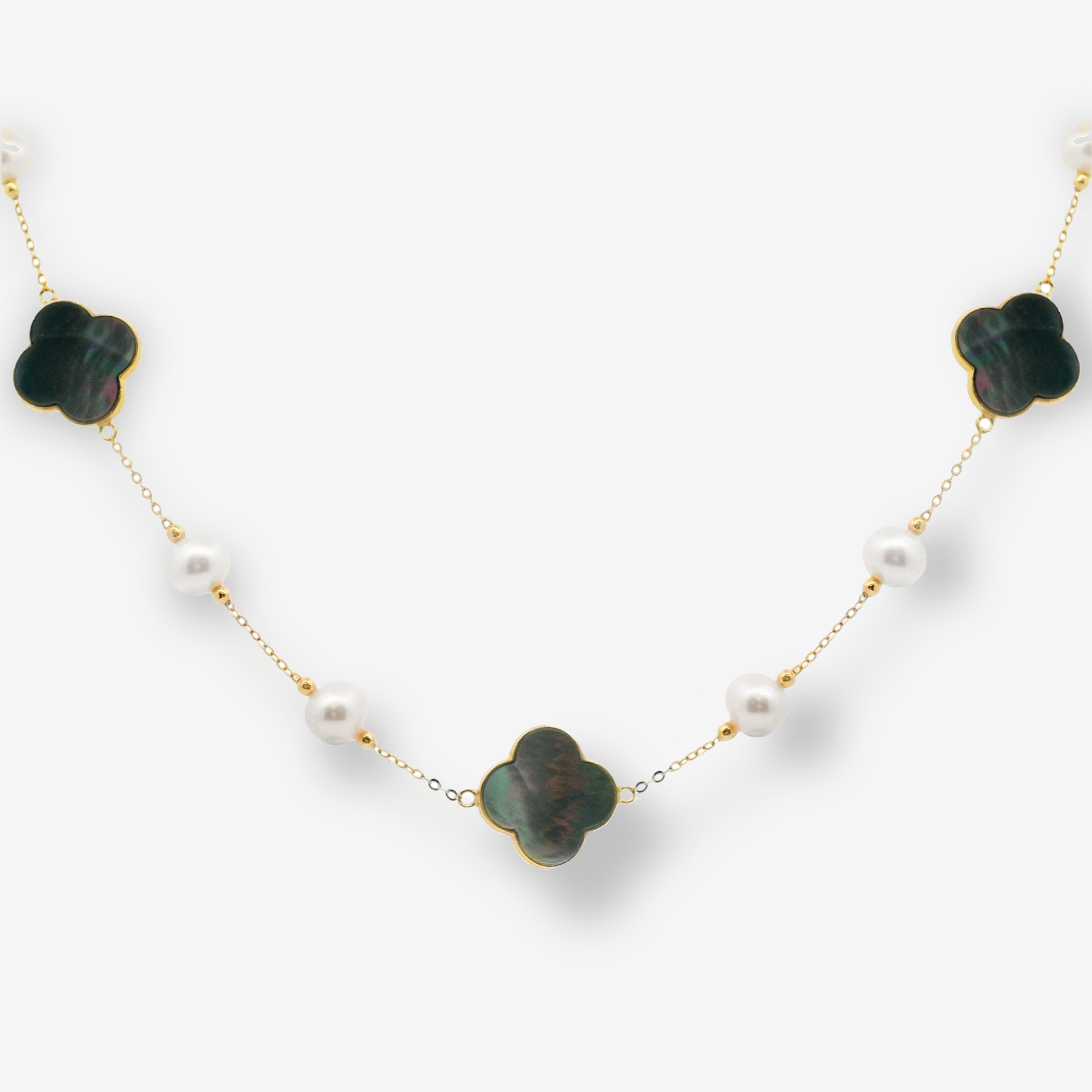 Tahitian-colored MOP Floral Stations & Pearl Necklace