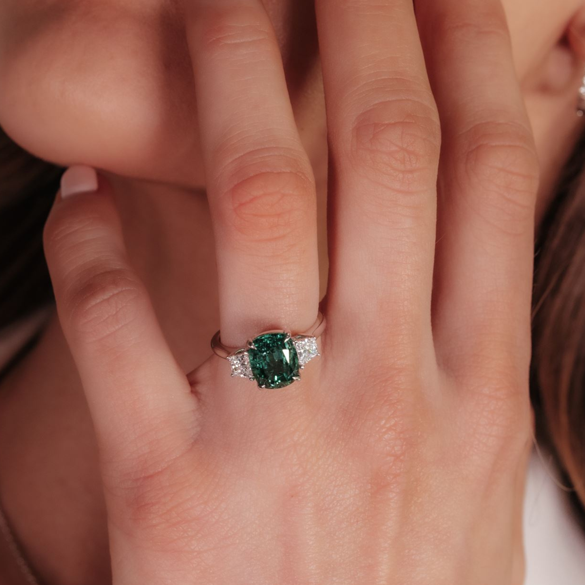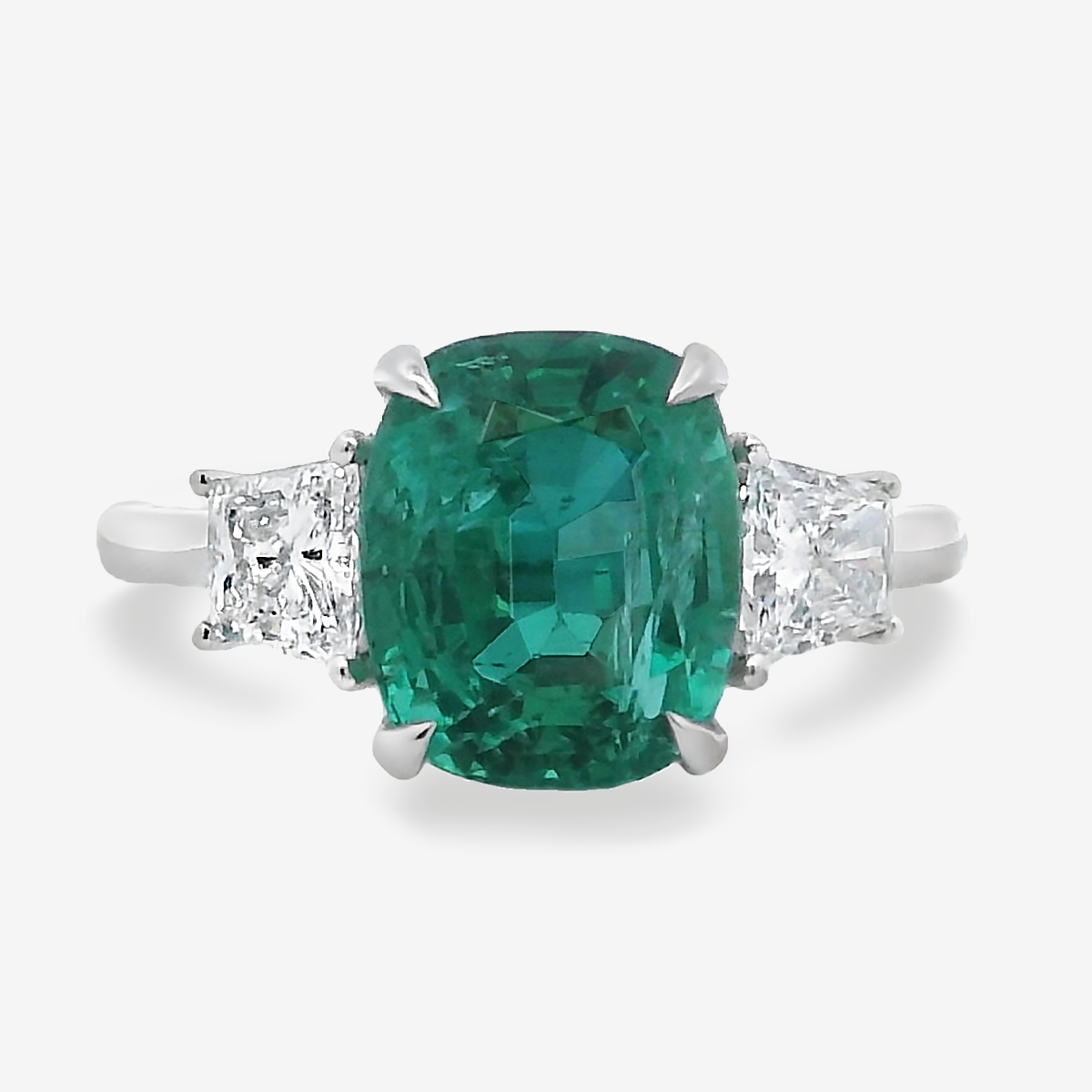 3.37CT Cushion Cut Emerald & Diamond Ring
