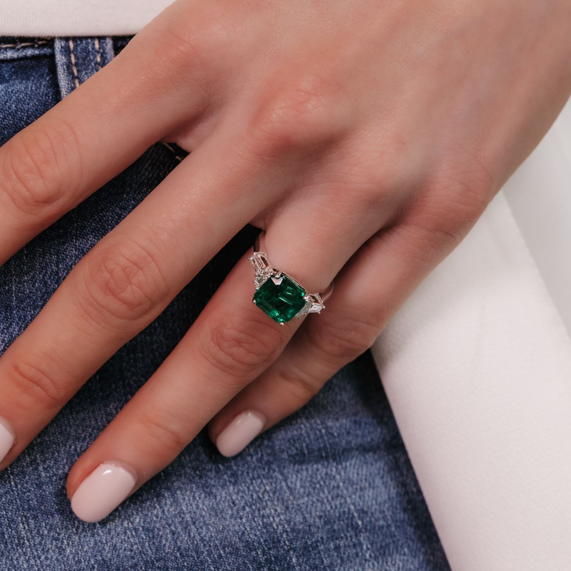 3/4 Emerald Cut & Round 3.00CT Diamond Ring