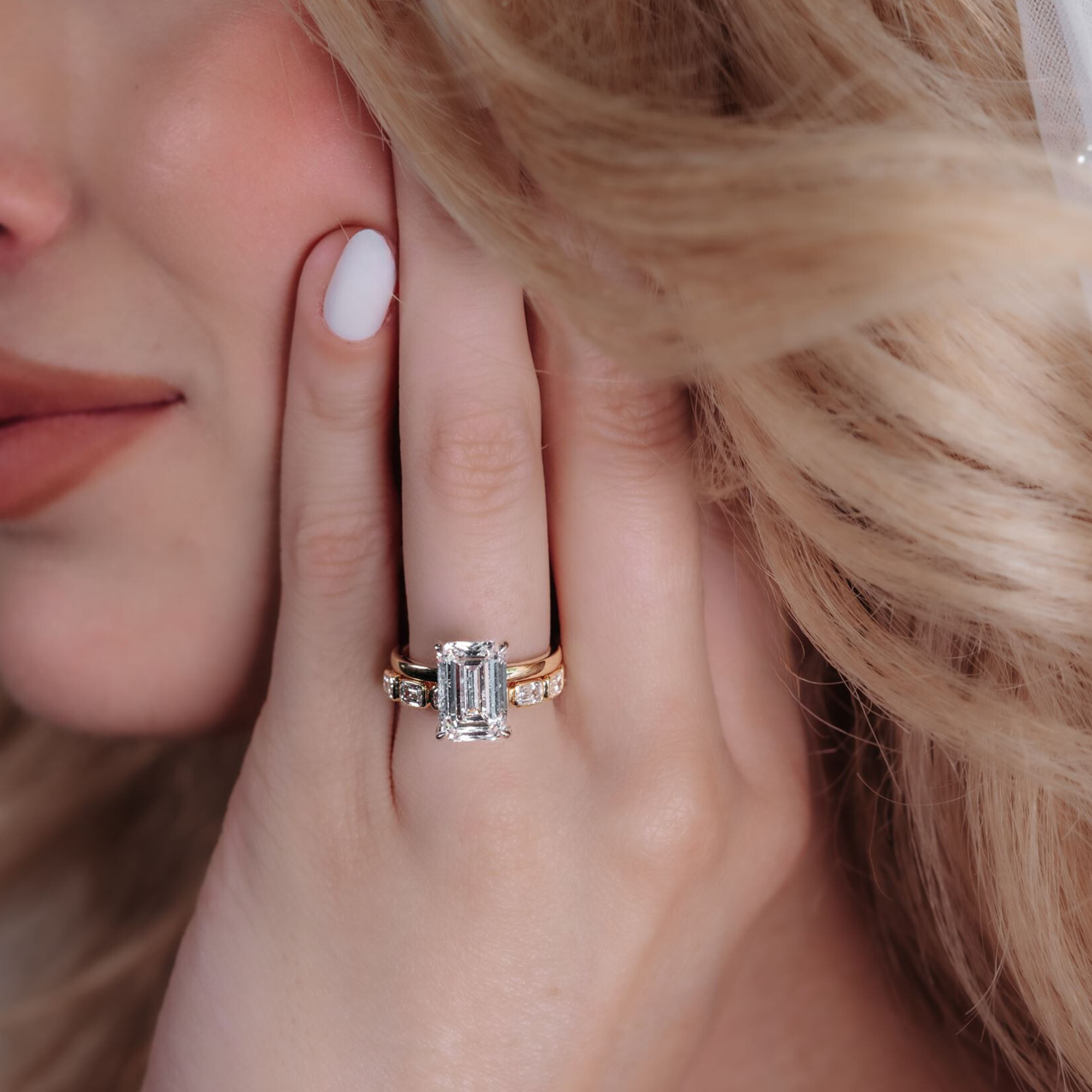 3/4 Low Base 2.10CT Emerald Cut Diamond Ring