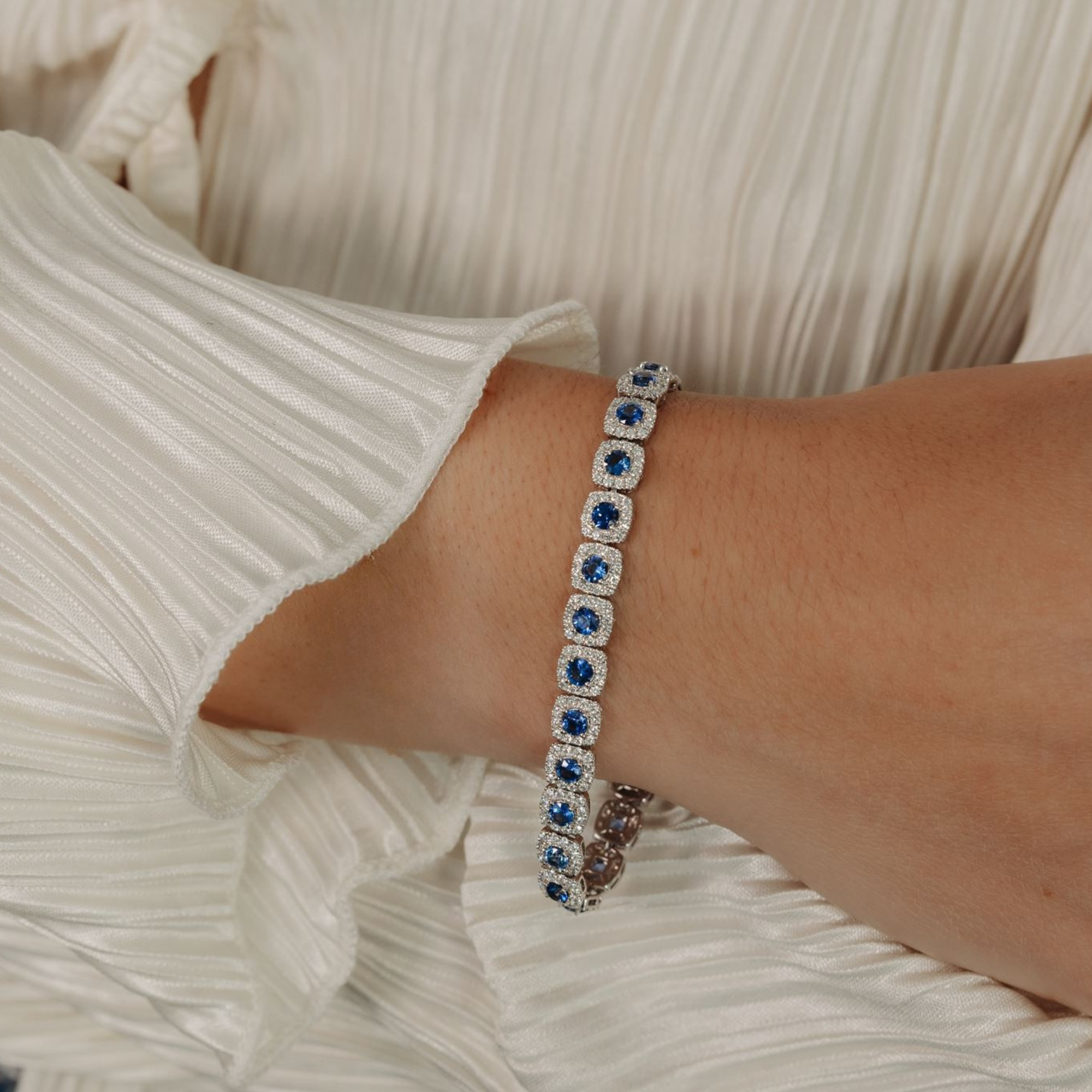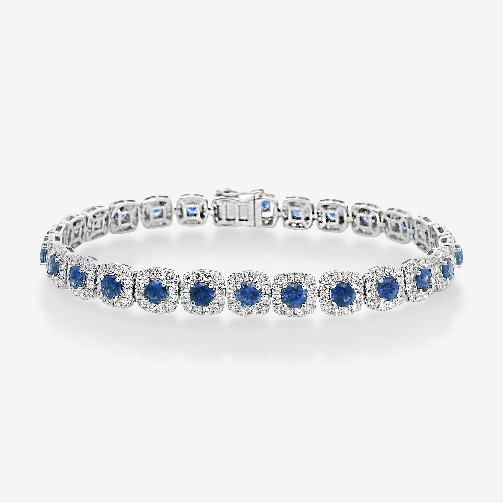 4.96CT Blue Sapphire & Diamond Halo Bracelet