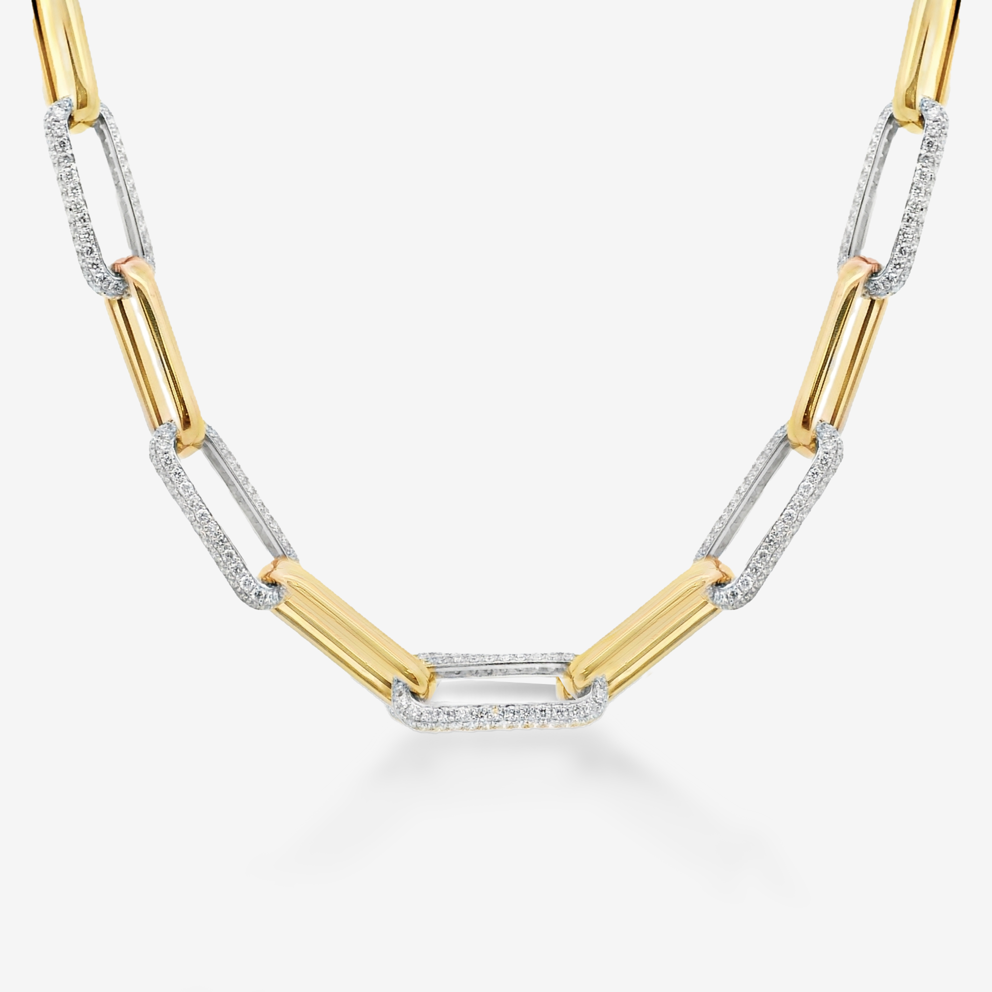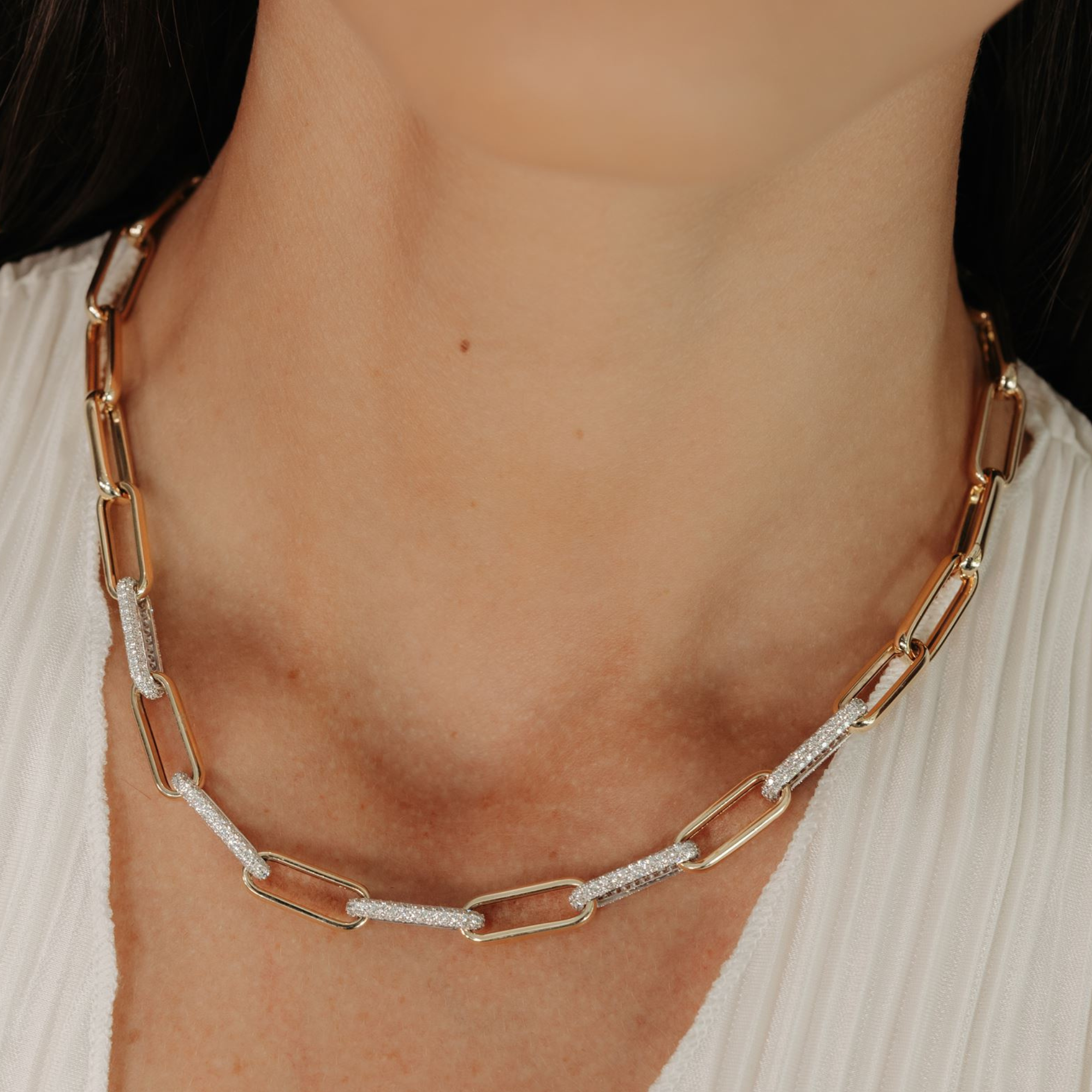 5 Pave 3.45CT Diamond Paper Clip Link Necklace