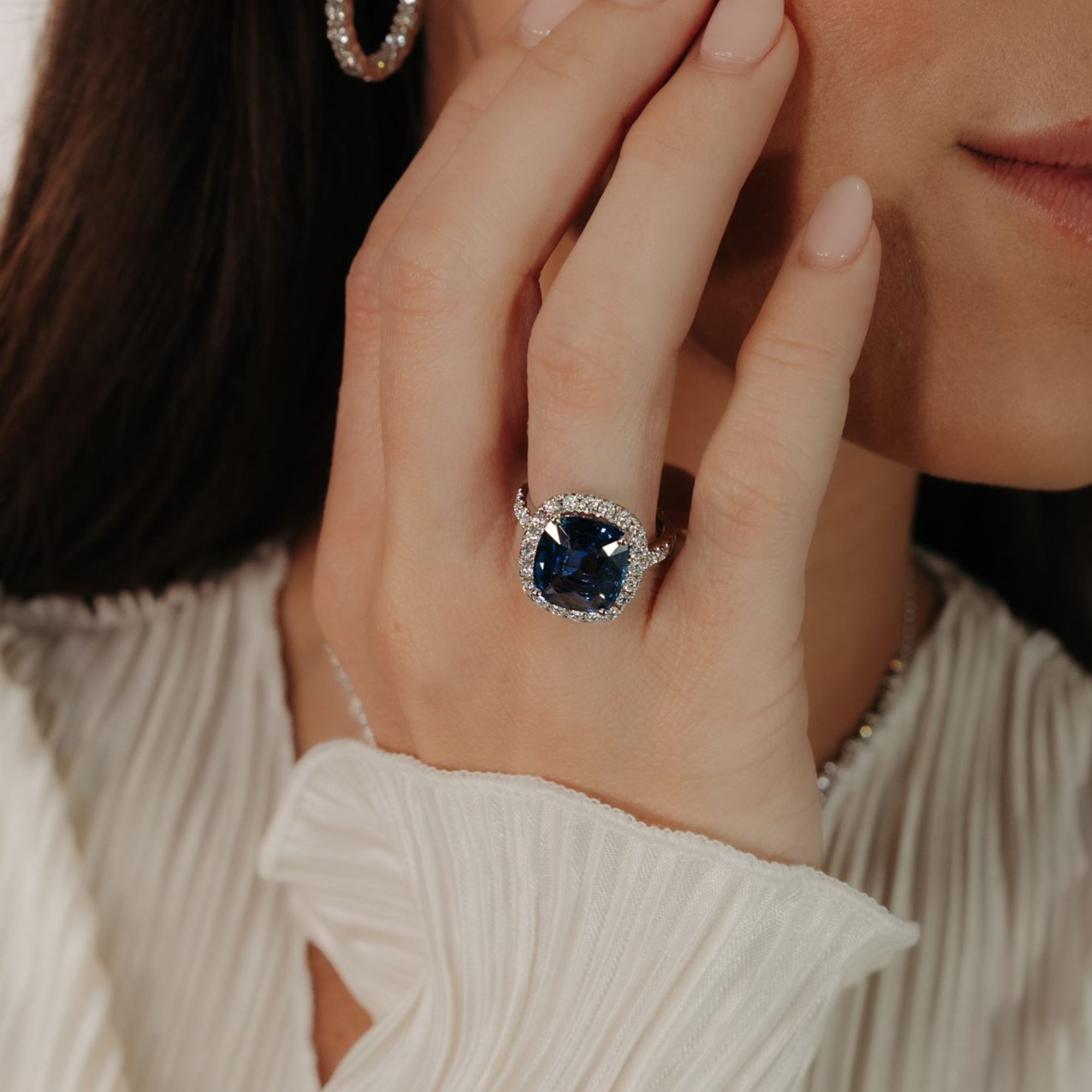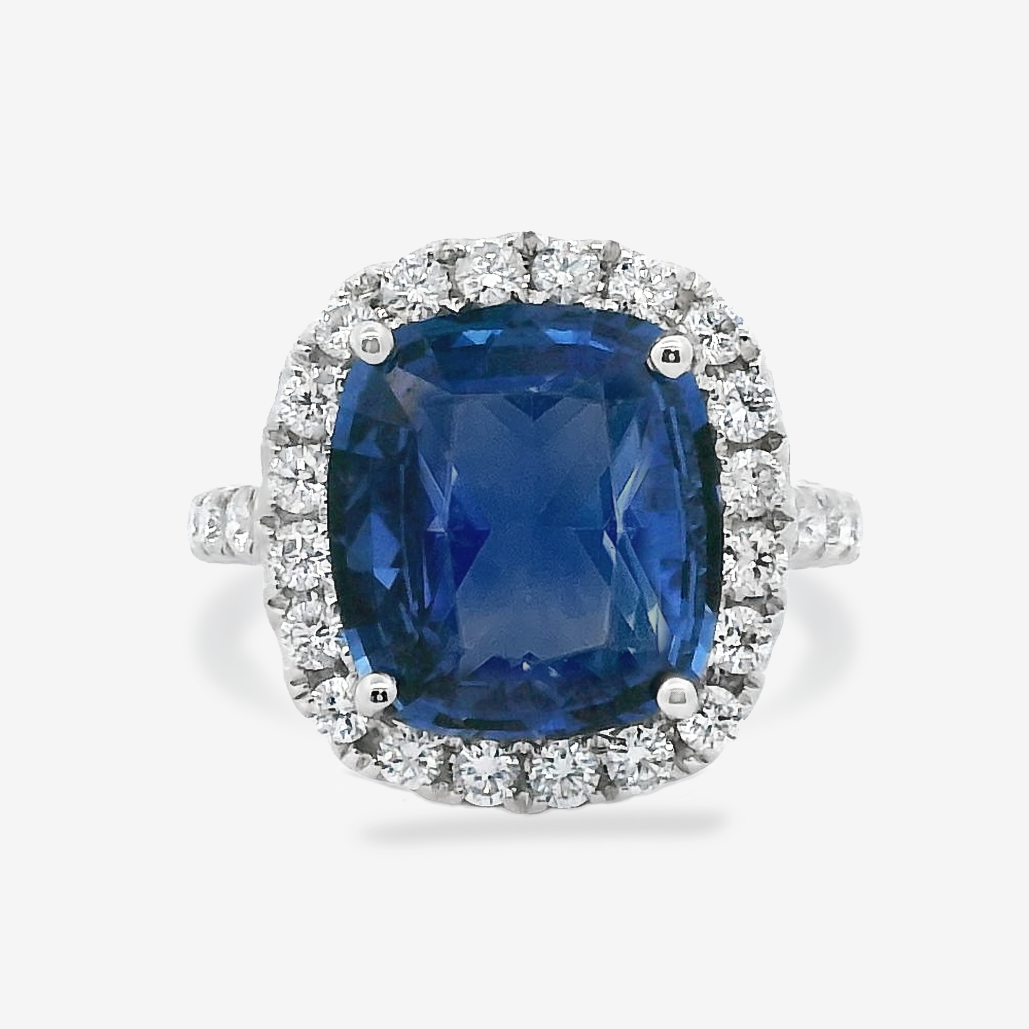 6.60CT Cushion Blue Sapphire & Diamond Ring