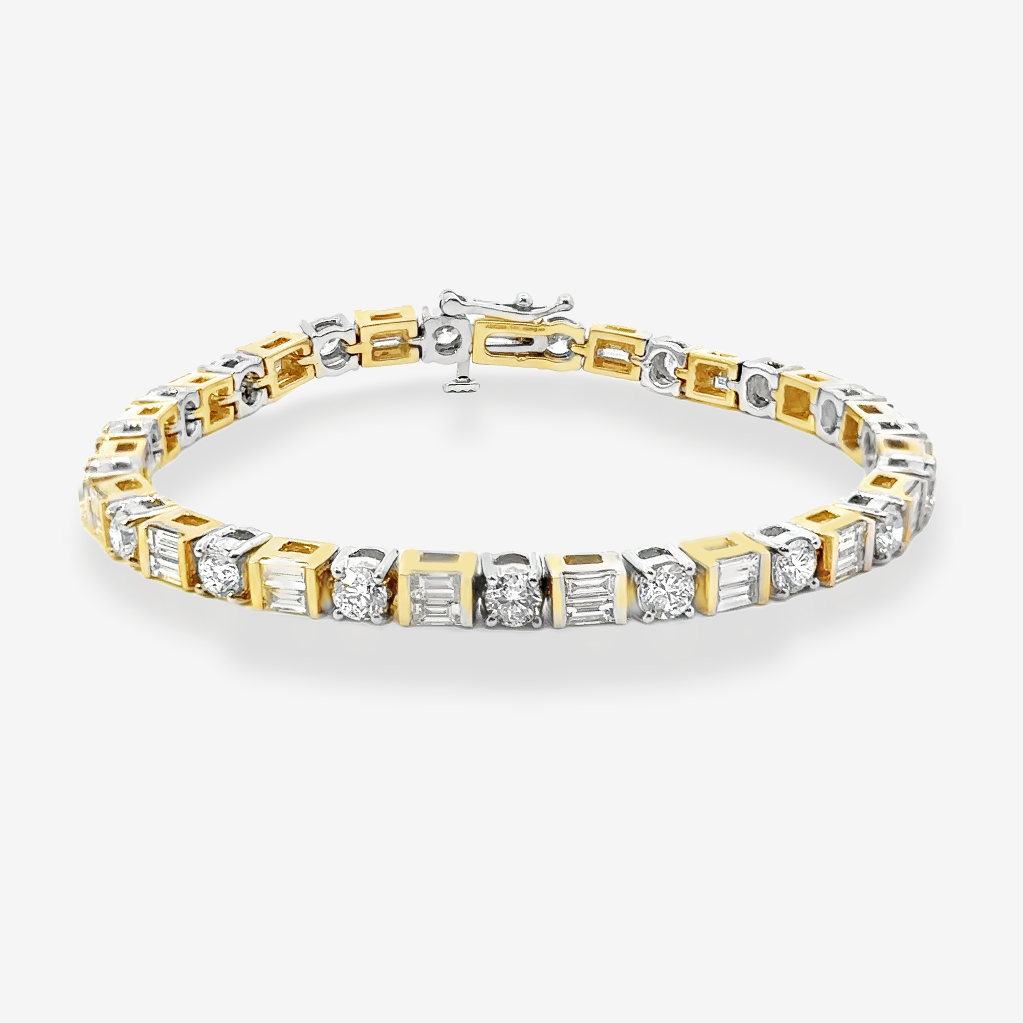 7.00CT 2 Tone Round & Baguette Tennis Bracelet