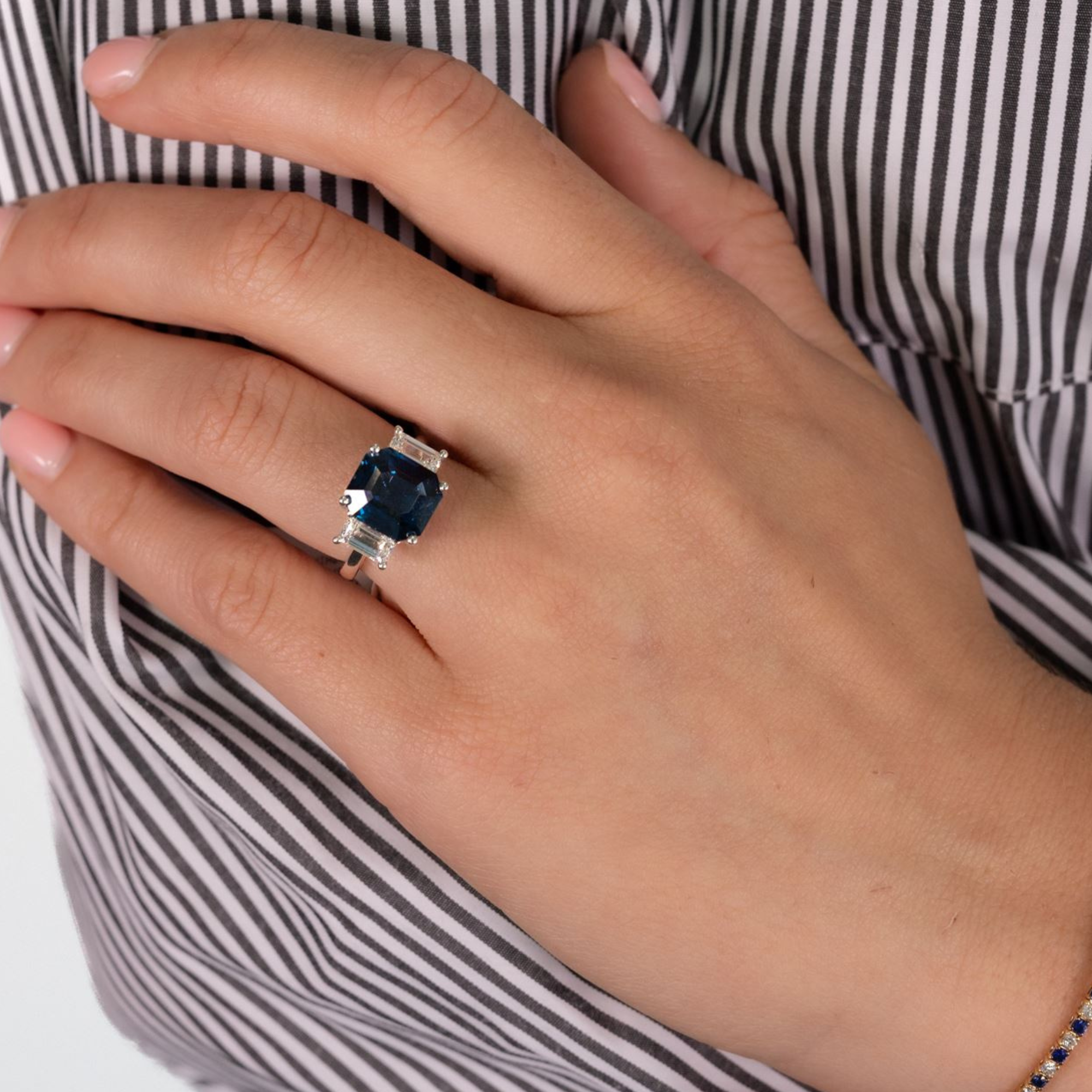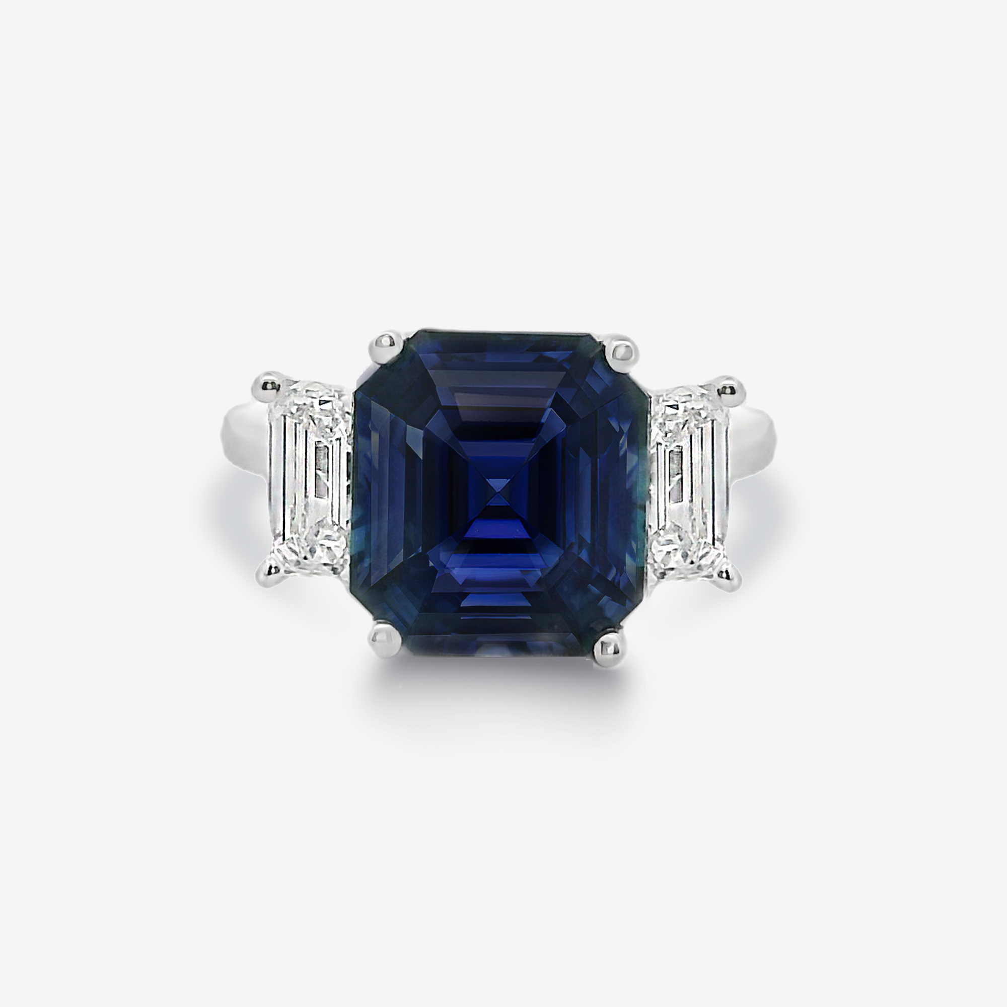 7.18CT 3 Stone Blue Sapphire & Diamond Ring