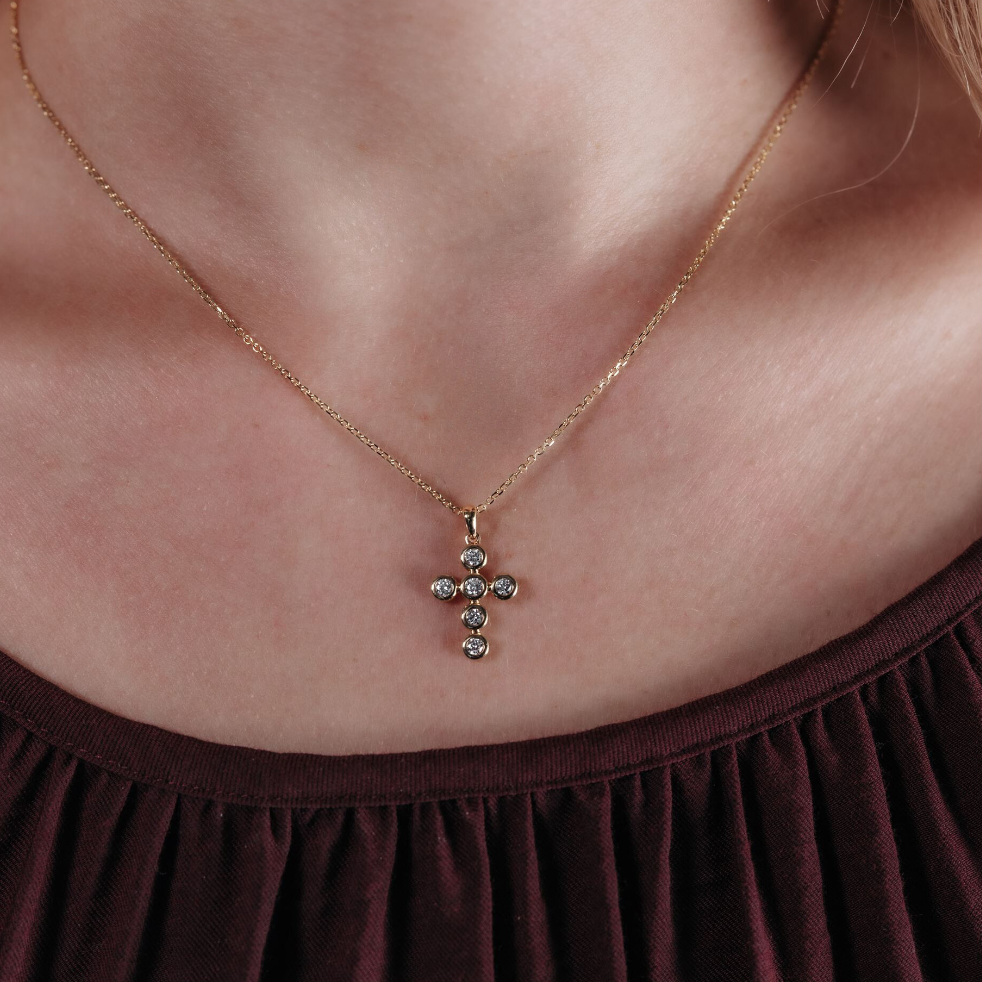 6 Bezel Set 0.30CT Diamond Cross Pendant