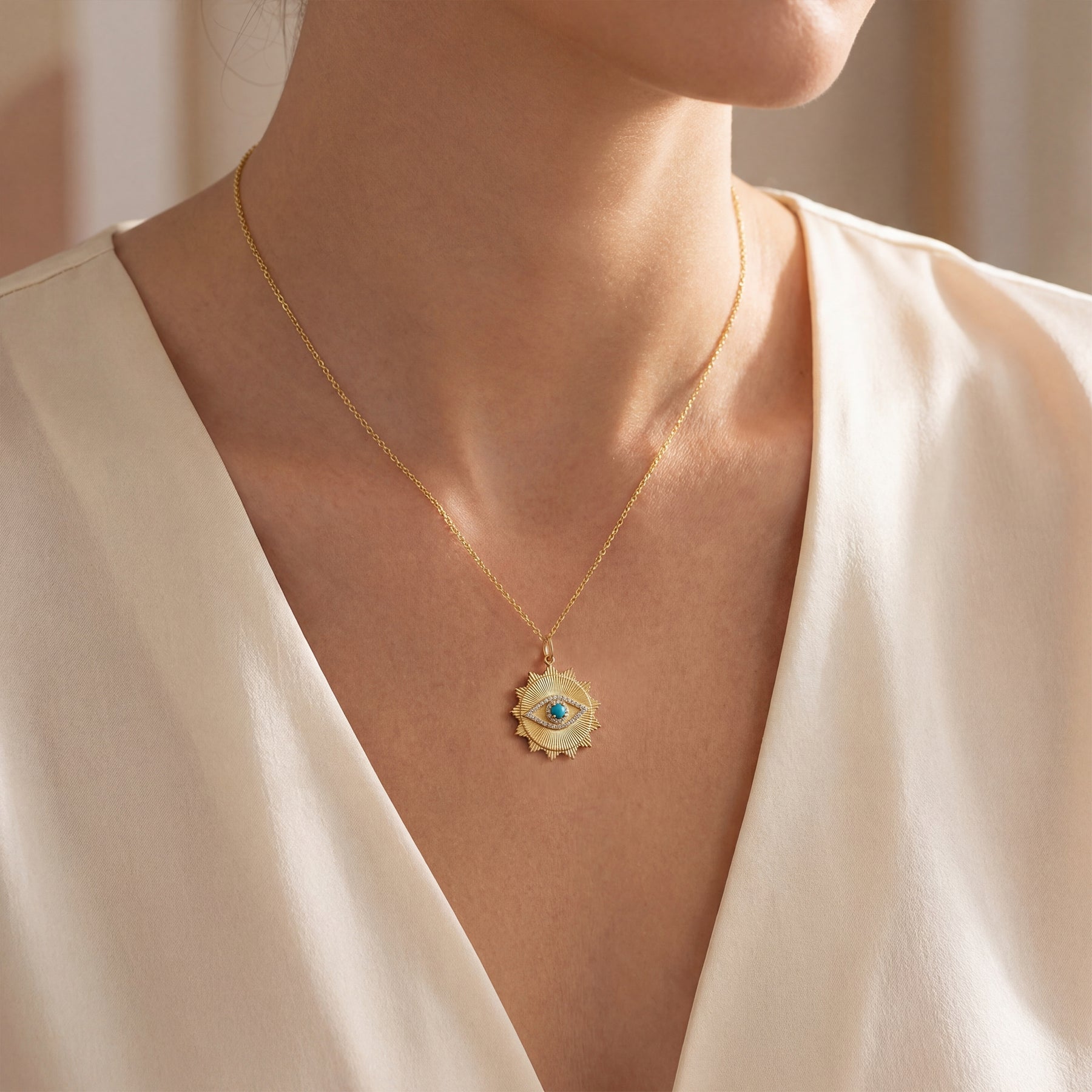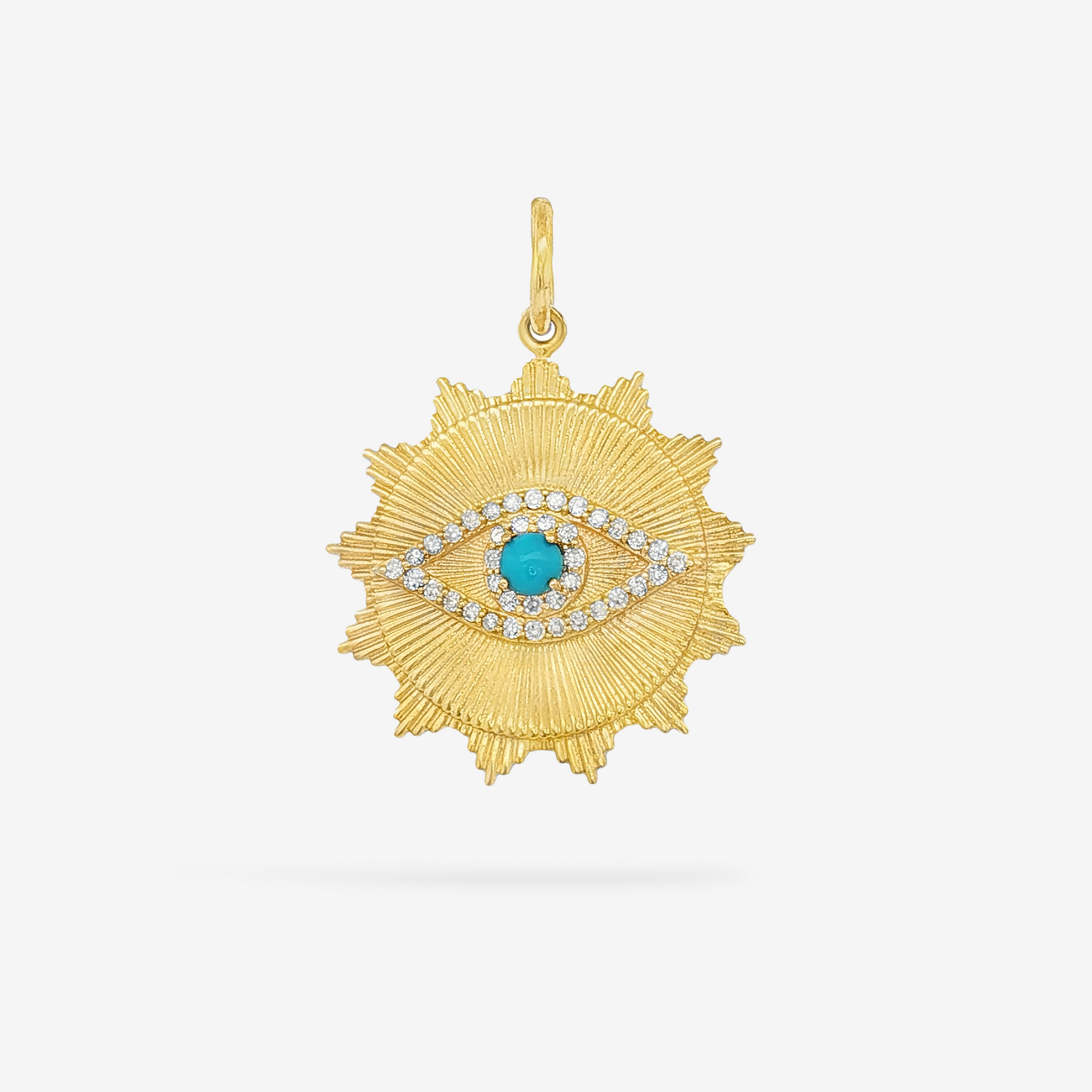 Turquoise & Diamond Evil Eye Fluted Rays Charm