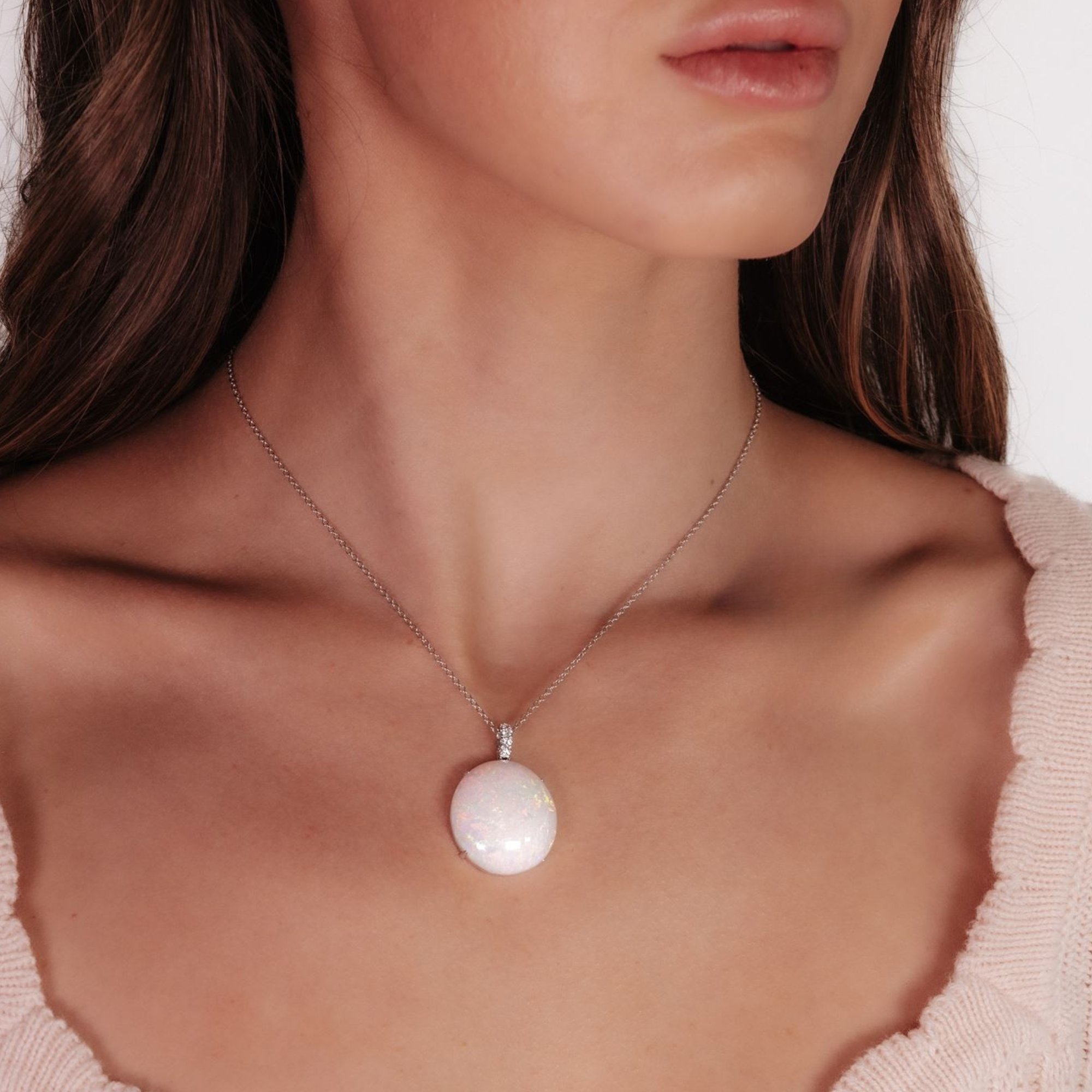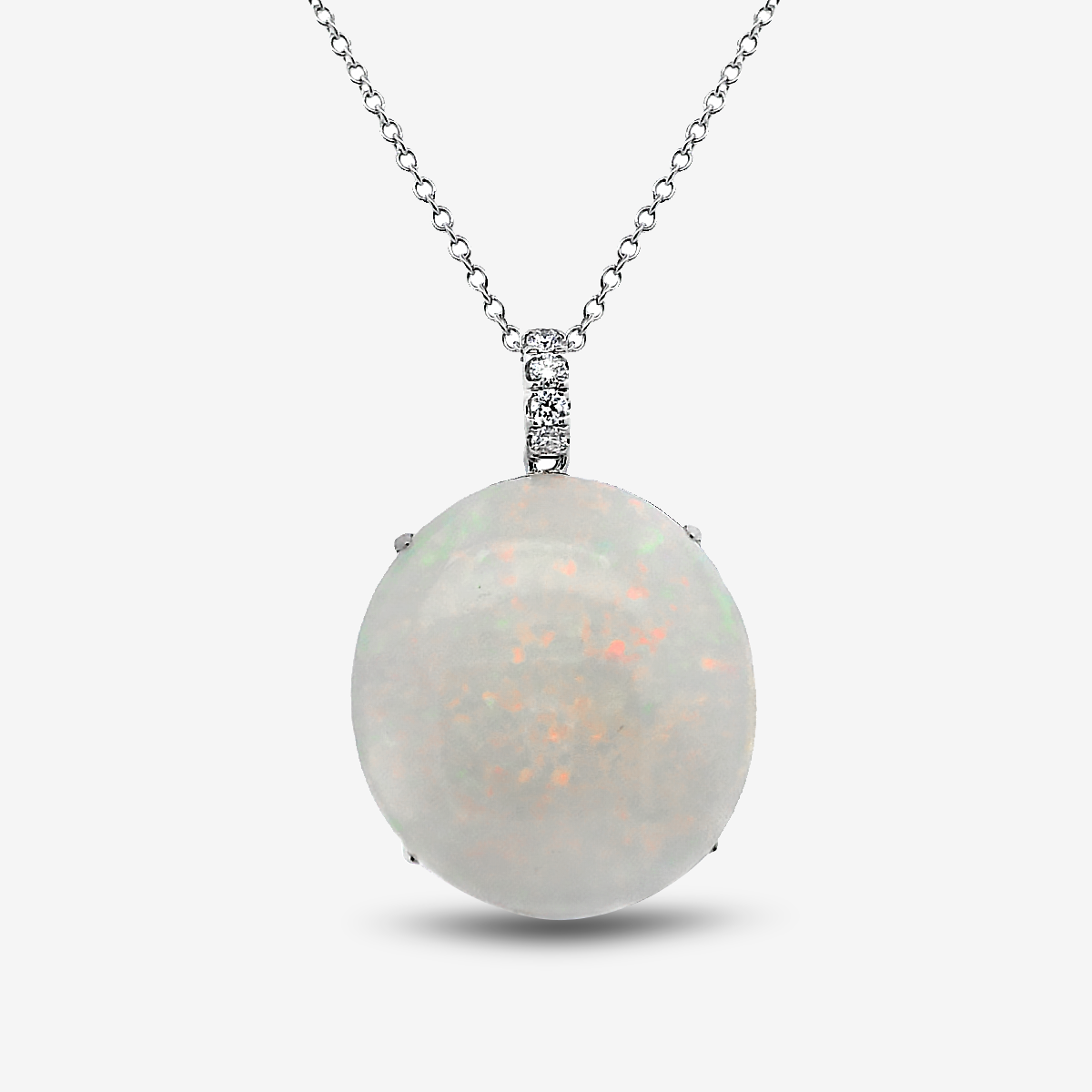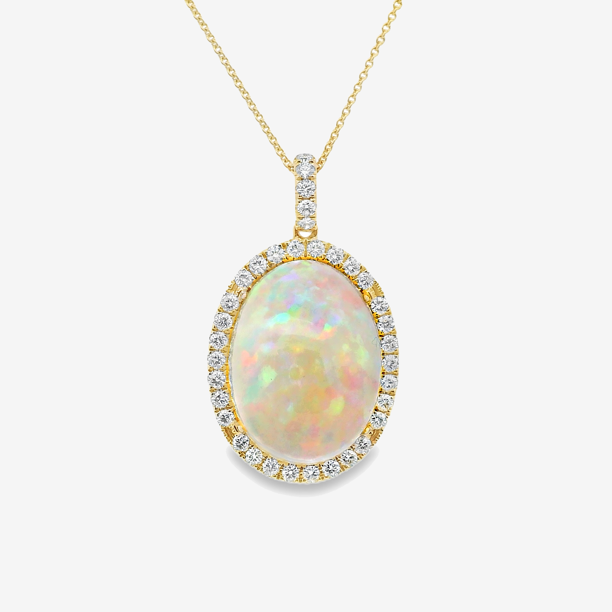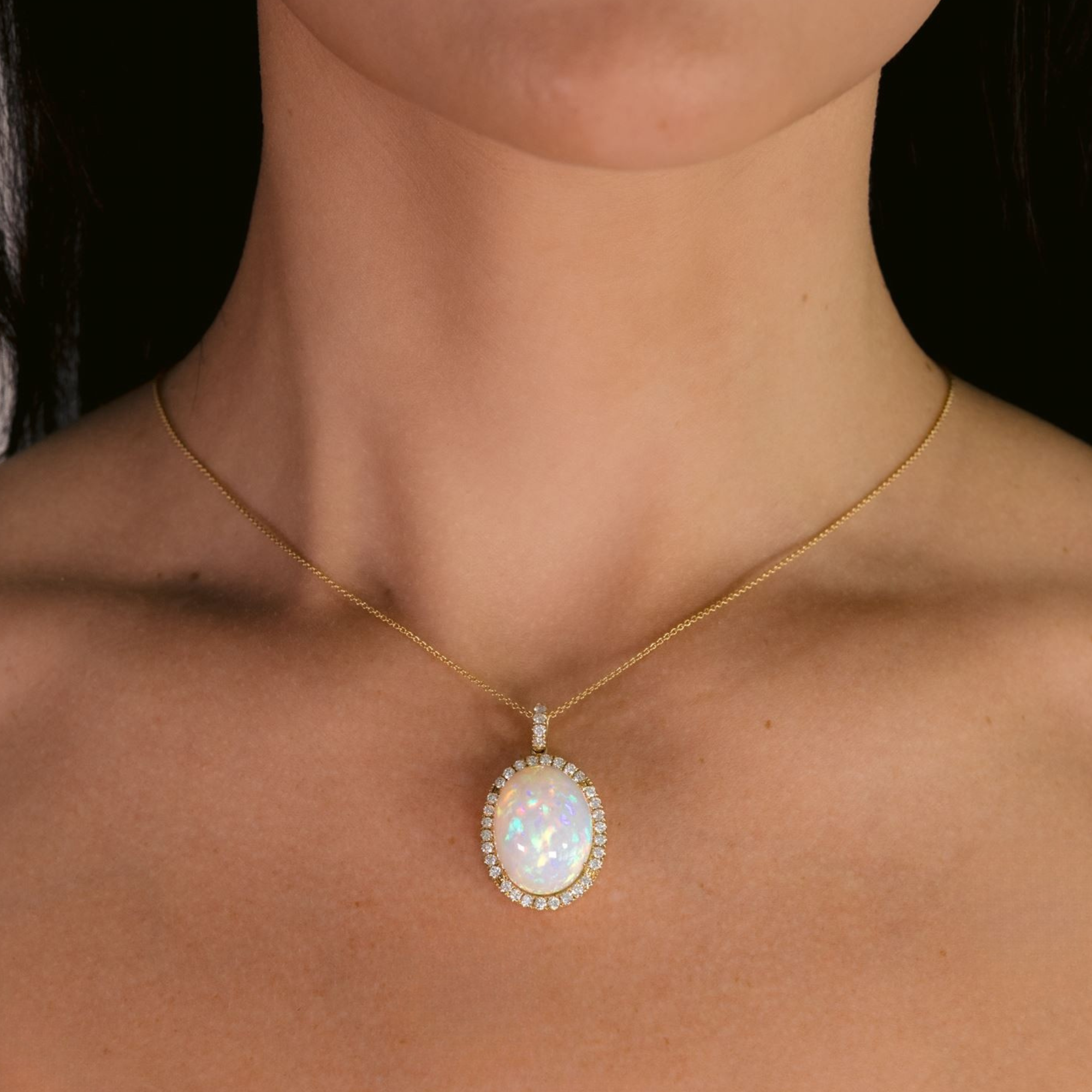 21.04ct Oval Shaped Opal & Diamond Halo Necklace