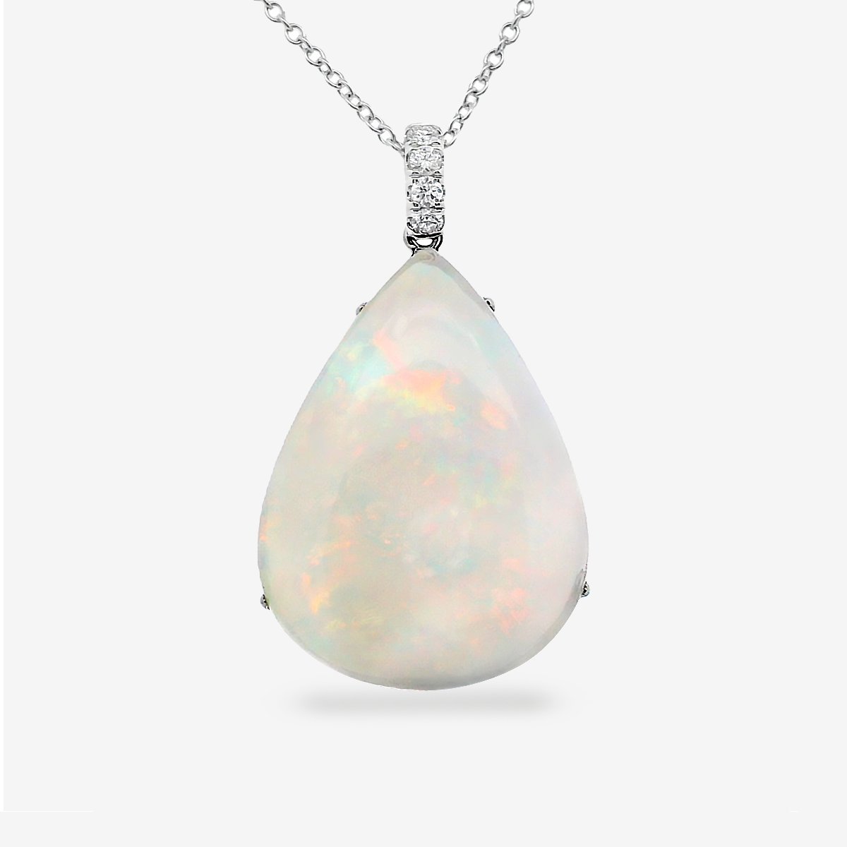 24.96CT Pear Shaped Opal & Diamond Necklace