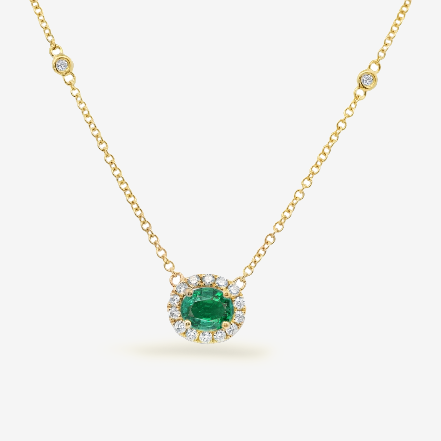 3.82CT Oval Emerald & Emerald Cut Diamond Necklace