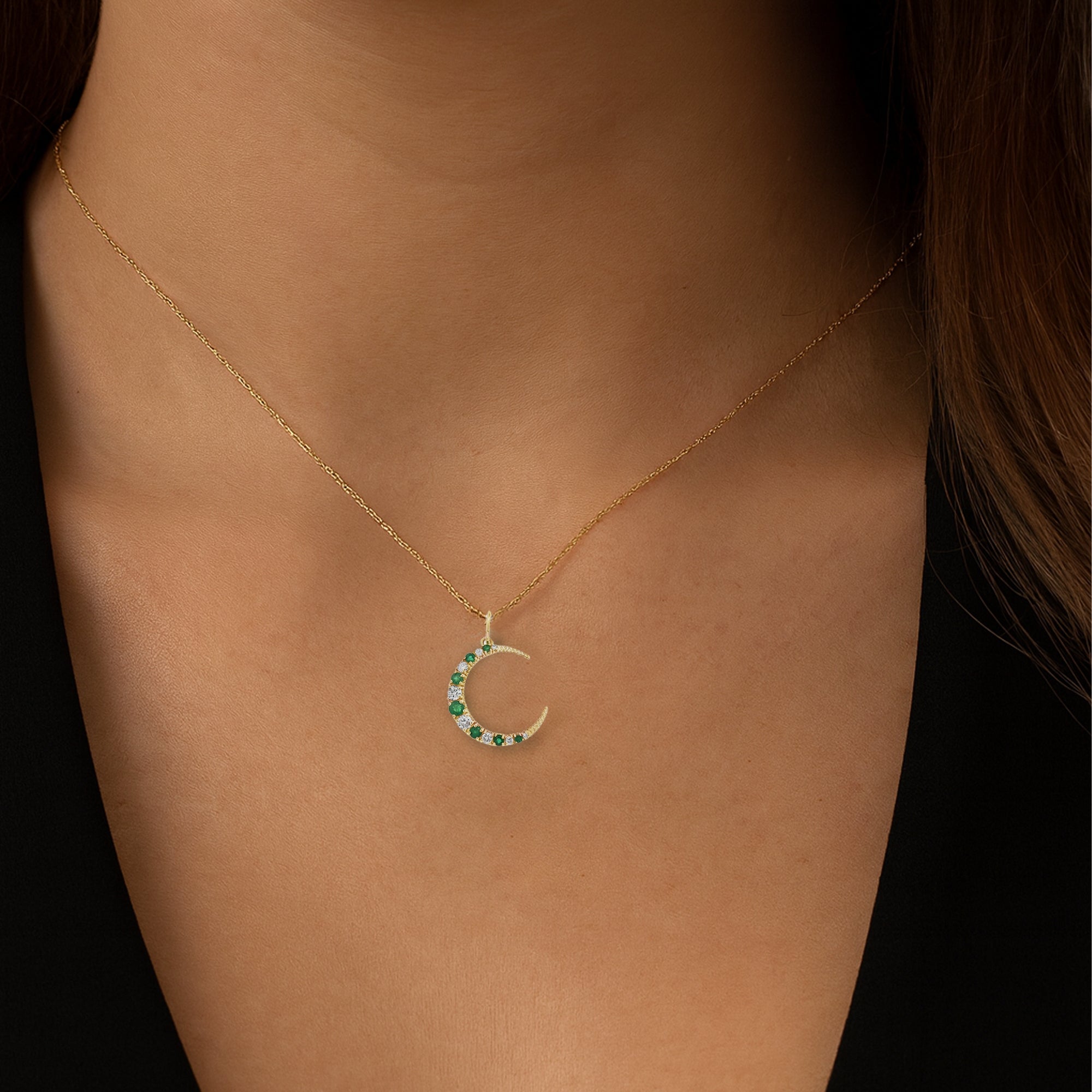0.30CT Emerald & Diamond Moon Charm