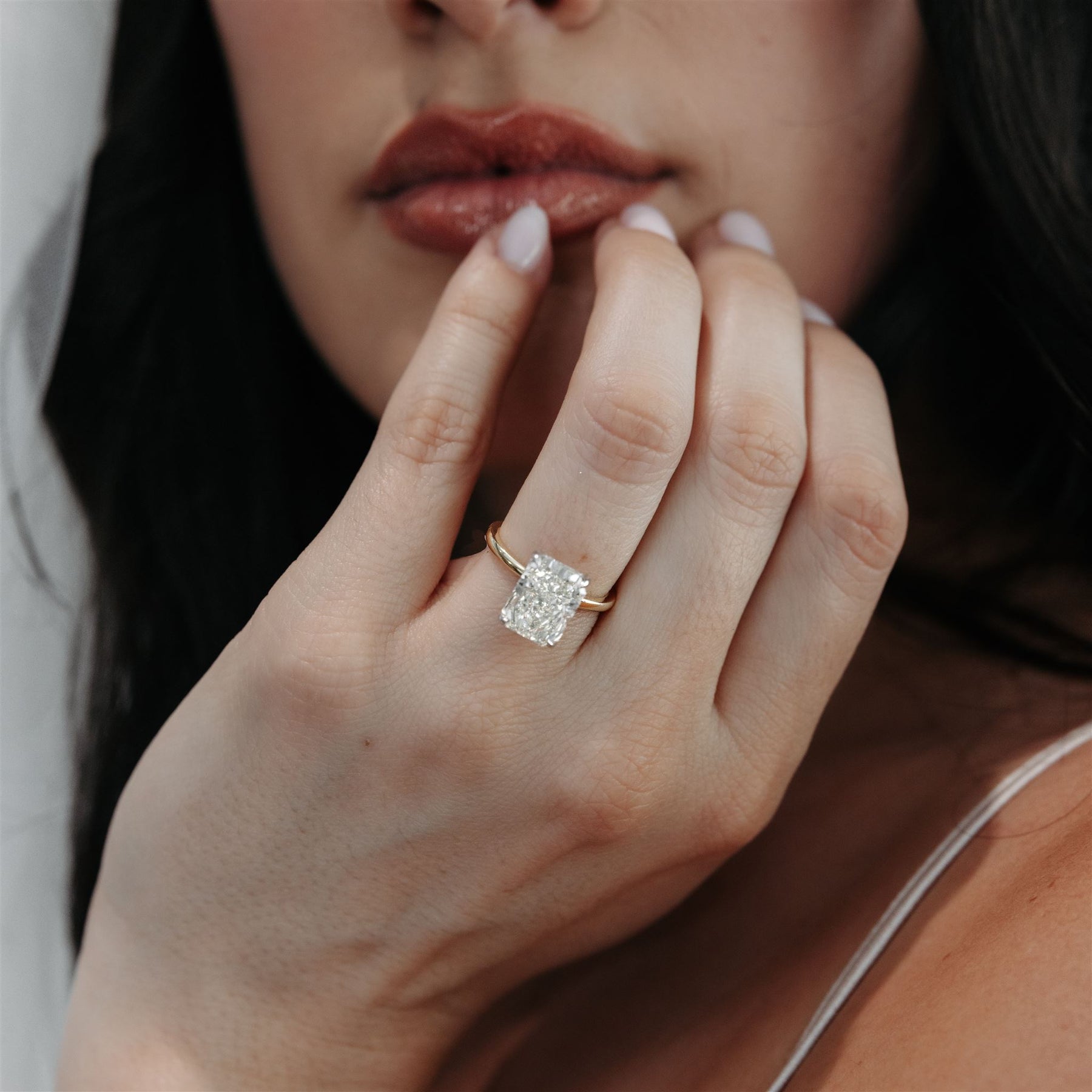 4.32CT Natural Diamond Petite Solitaire Hidden Halo Cushion Engagement Ring