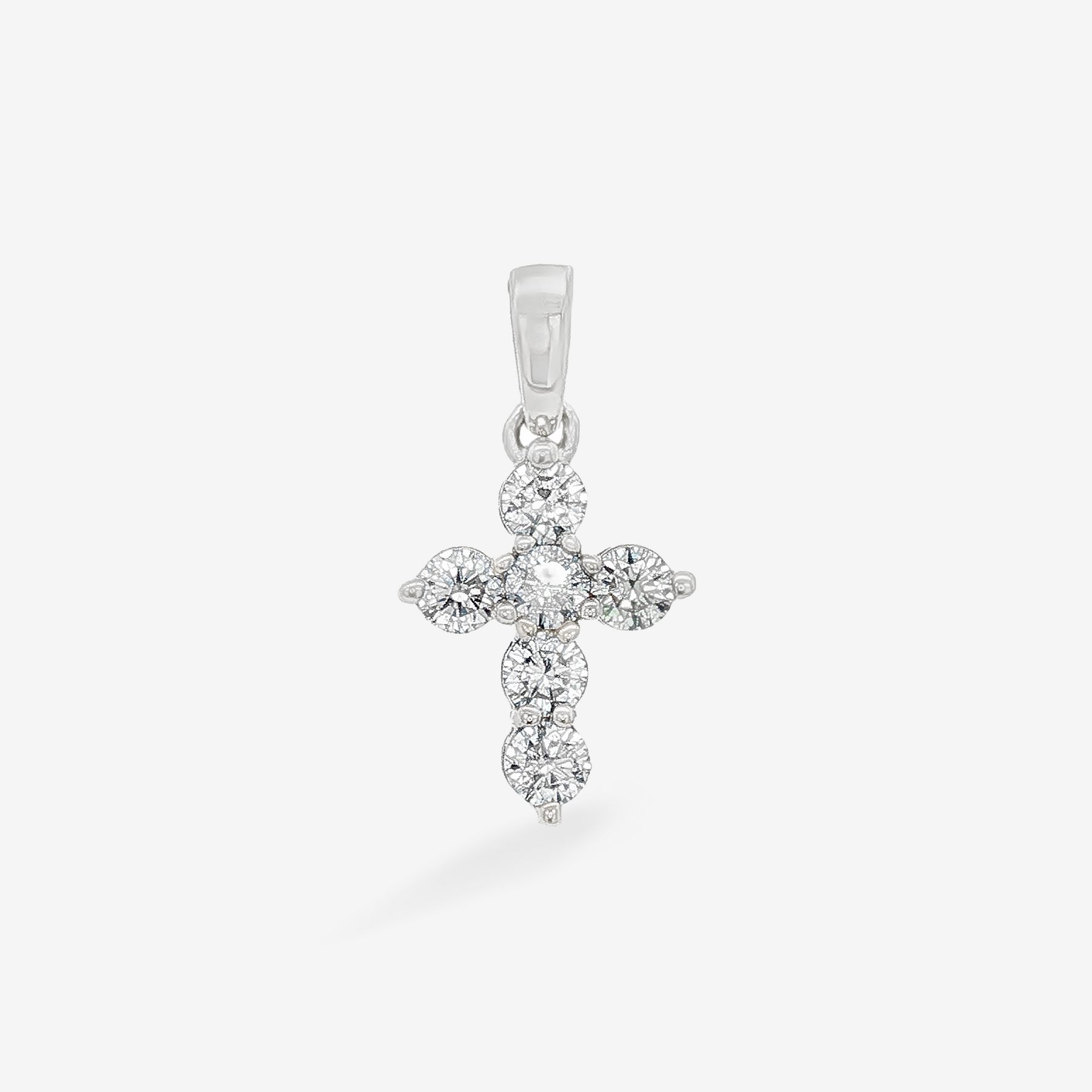 Classic Shared Prong 0.95CT Diamond Cross Pendant