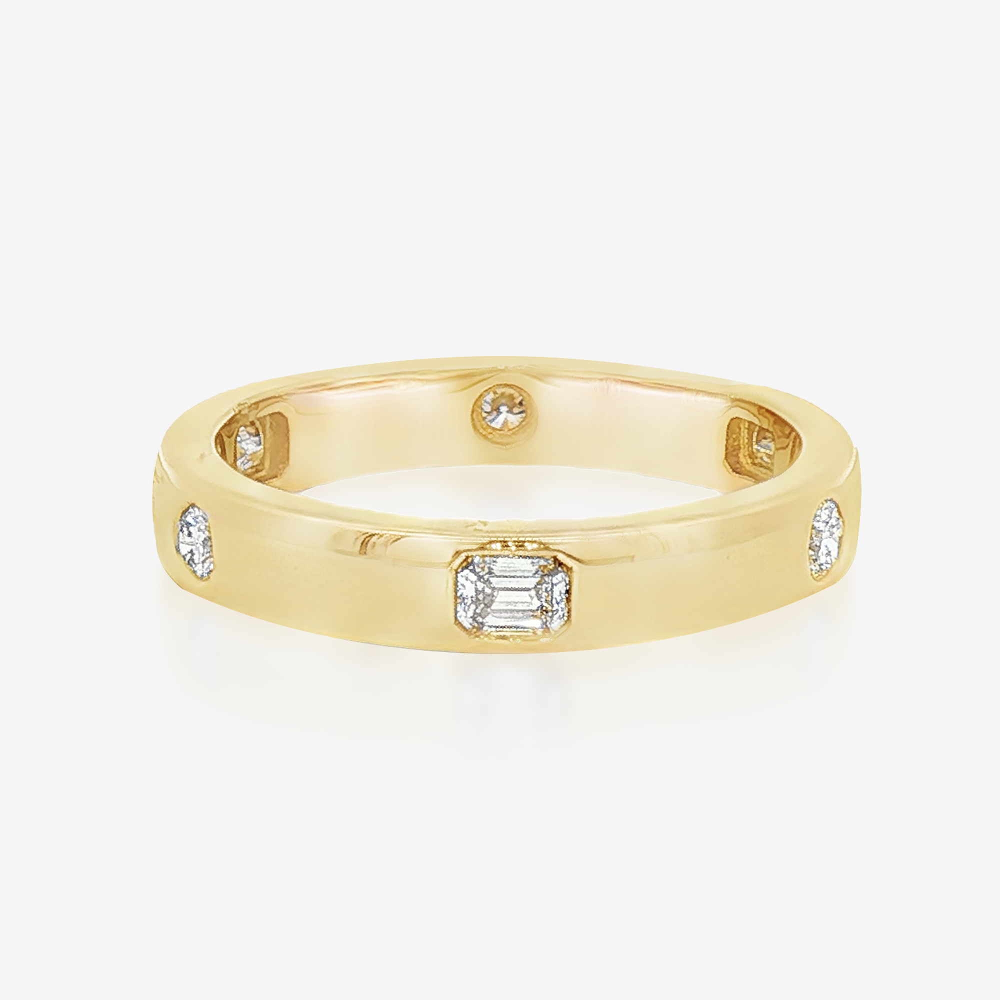 Emerald Cut & Round Burnished Diamond Eternity Ring