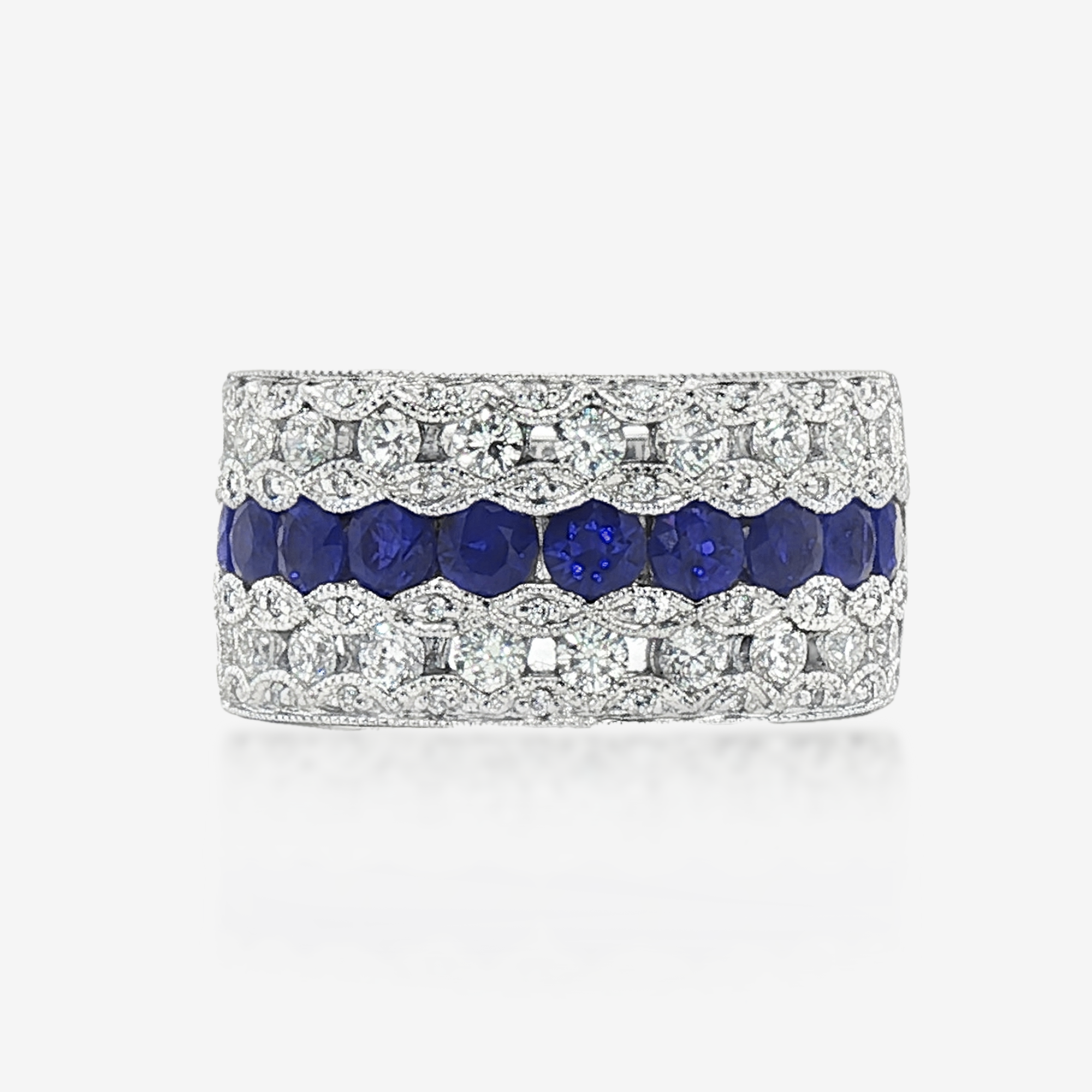 Wide 7 Layers Blue Sapphire & Diamond Ring