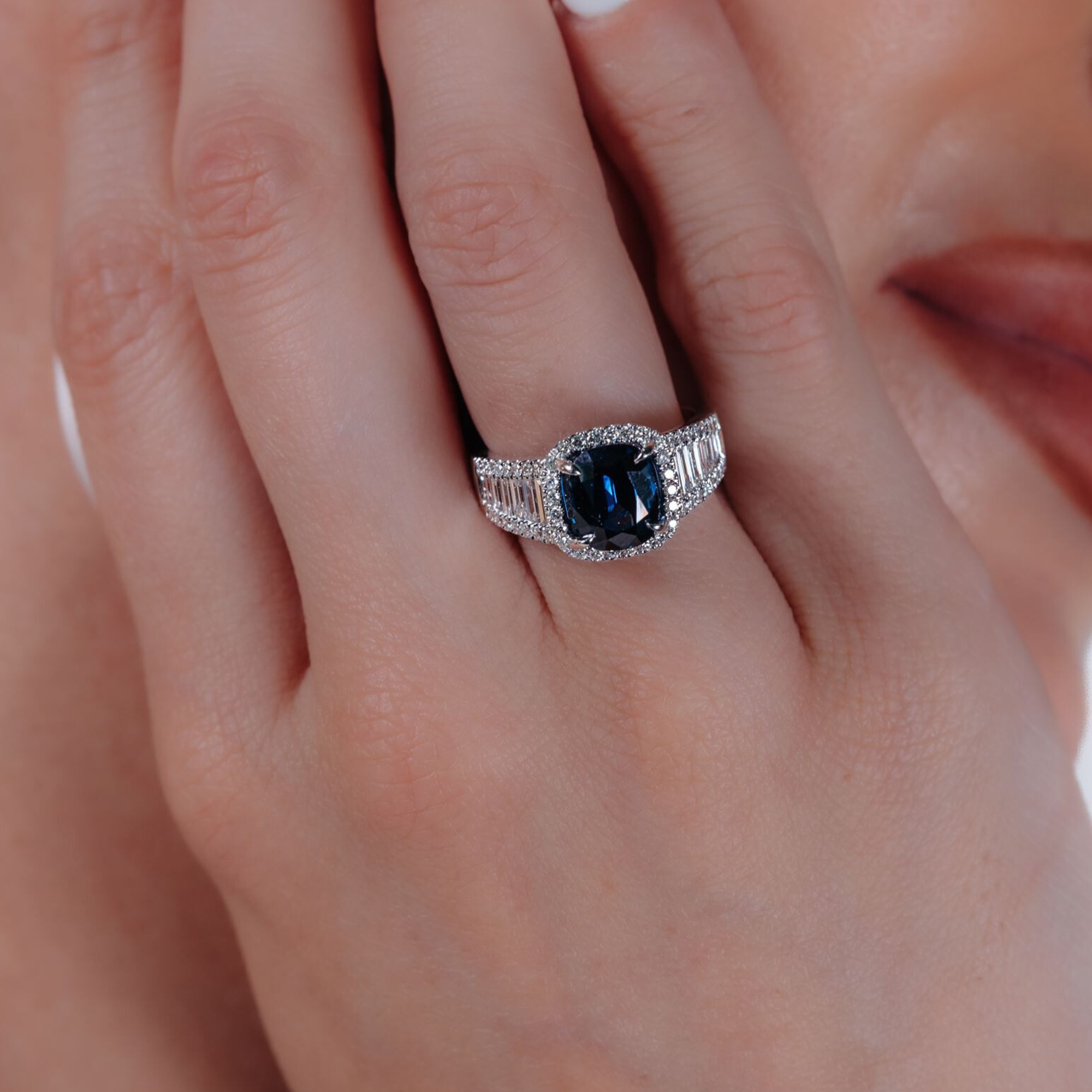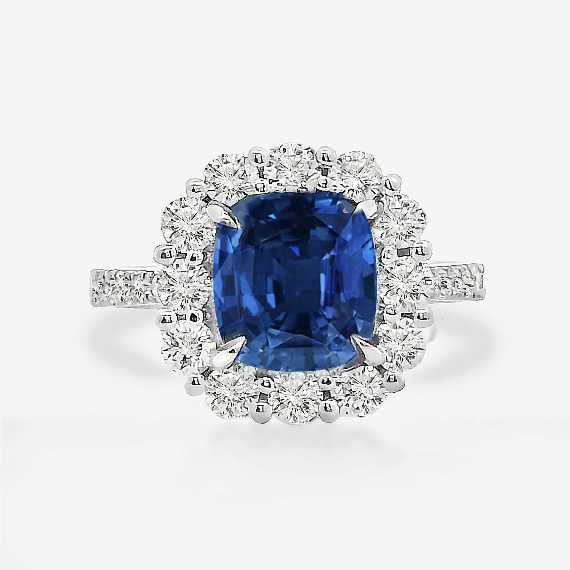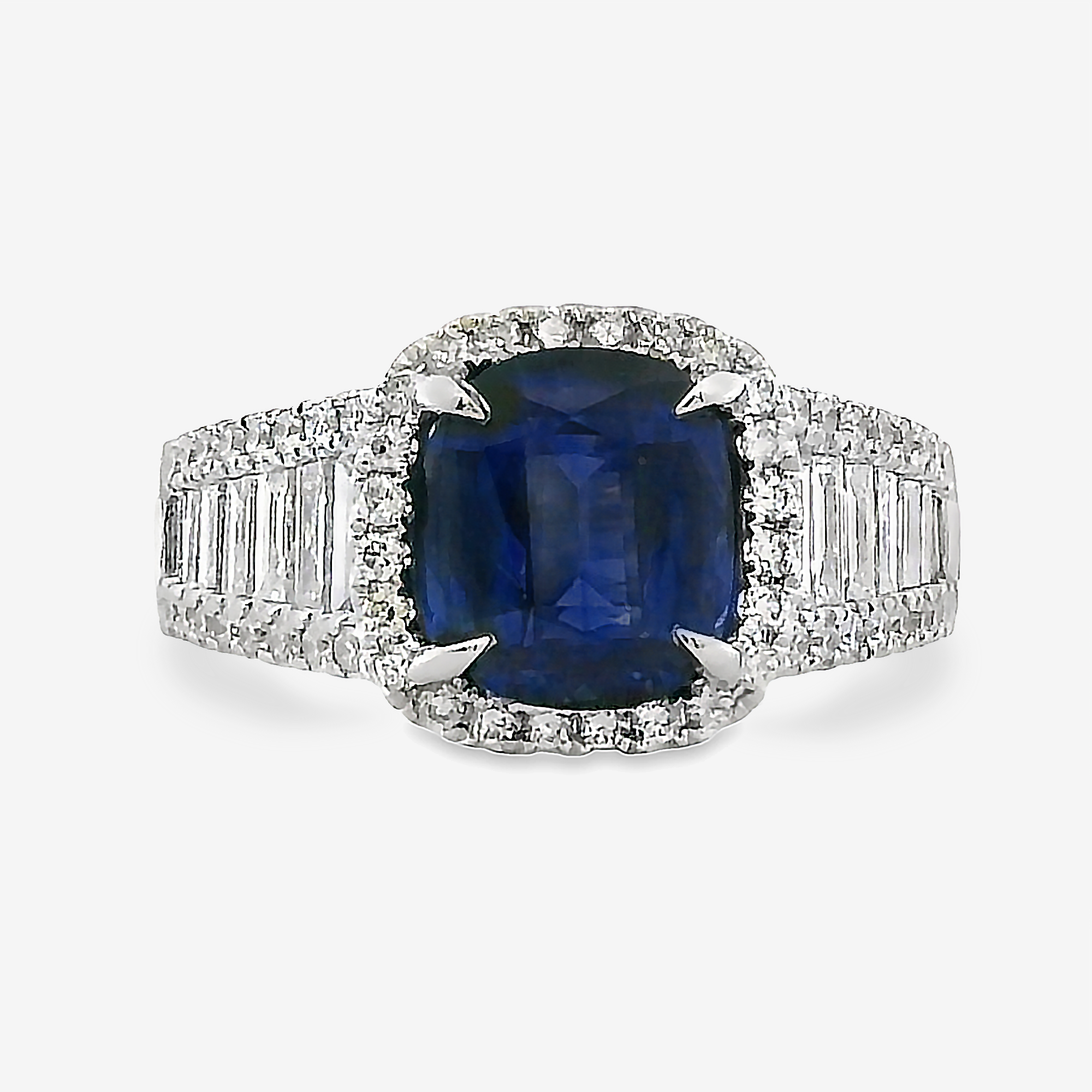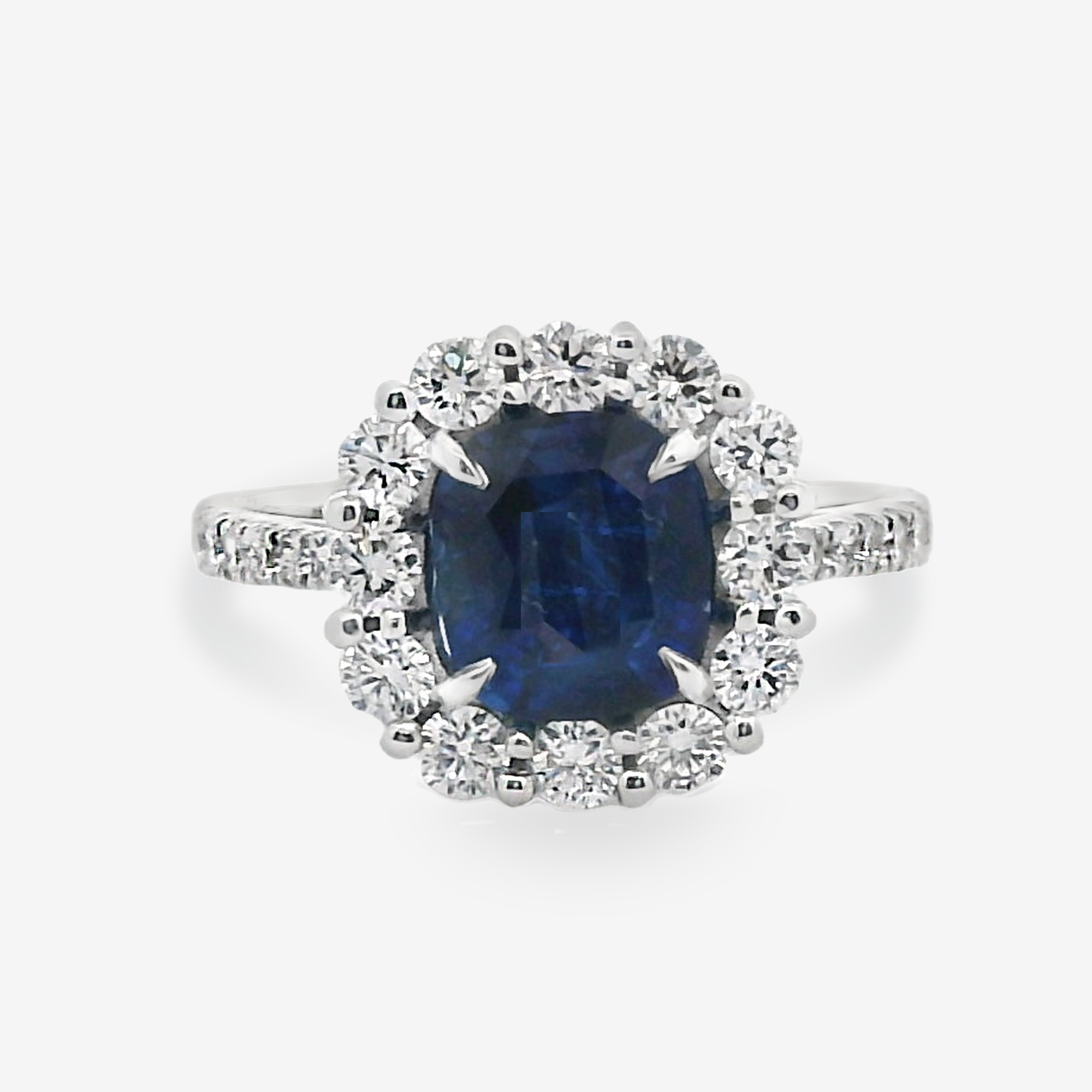 2.05CT Cushion Blue Sapphire & Diamond Ring