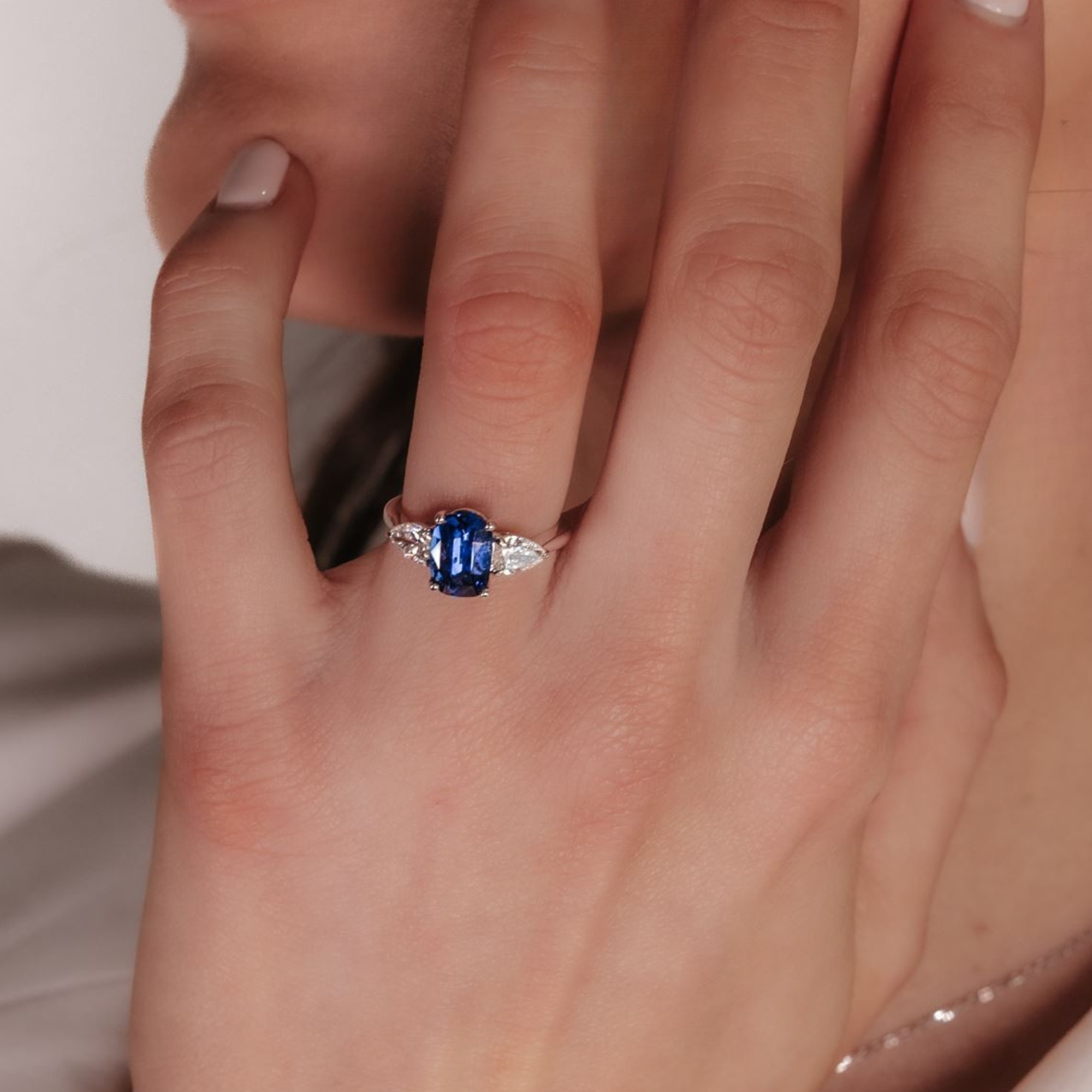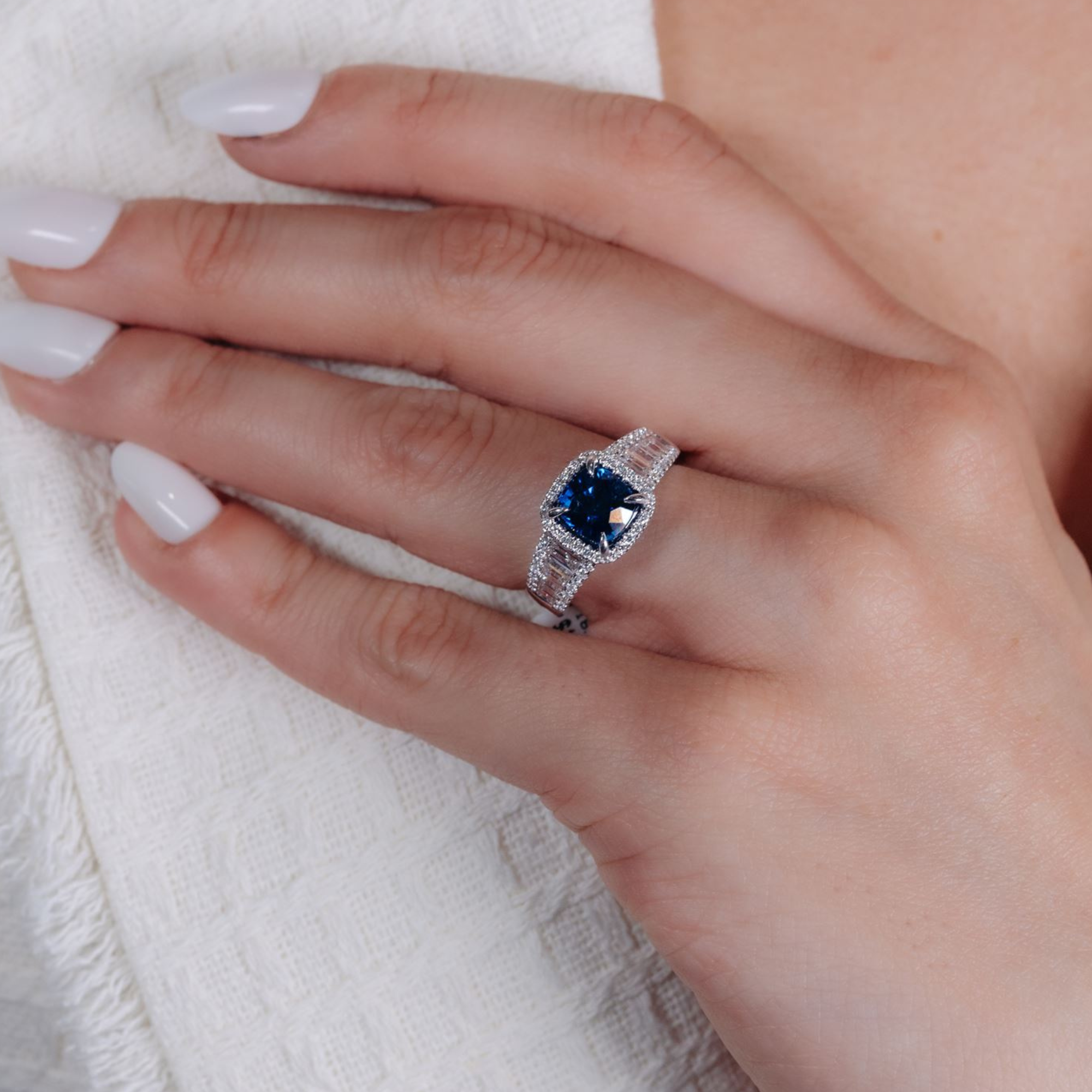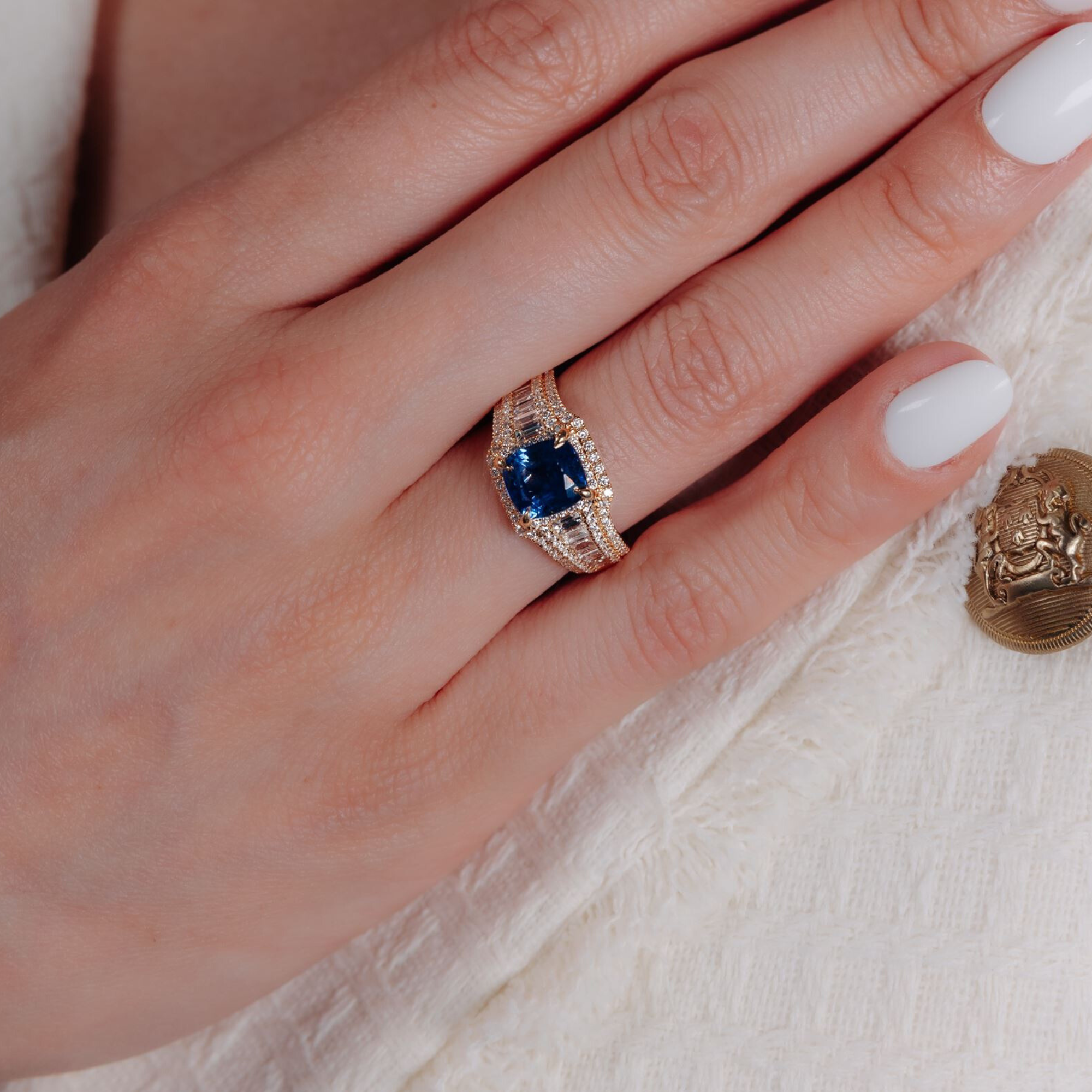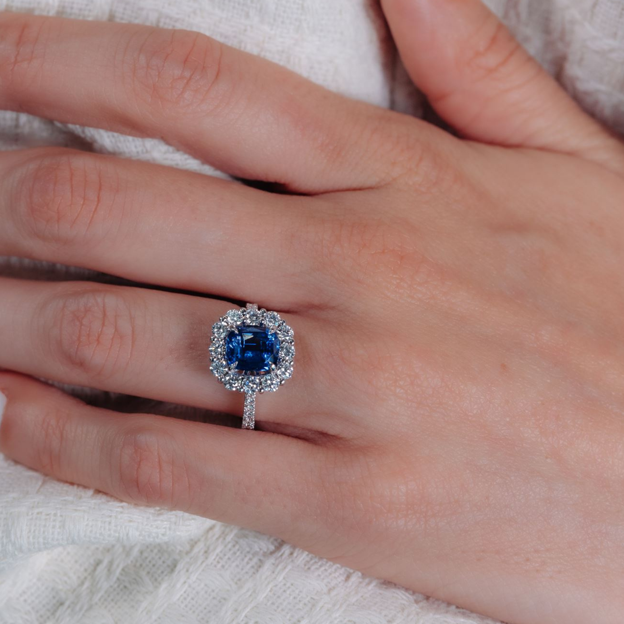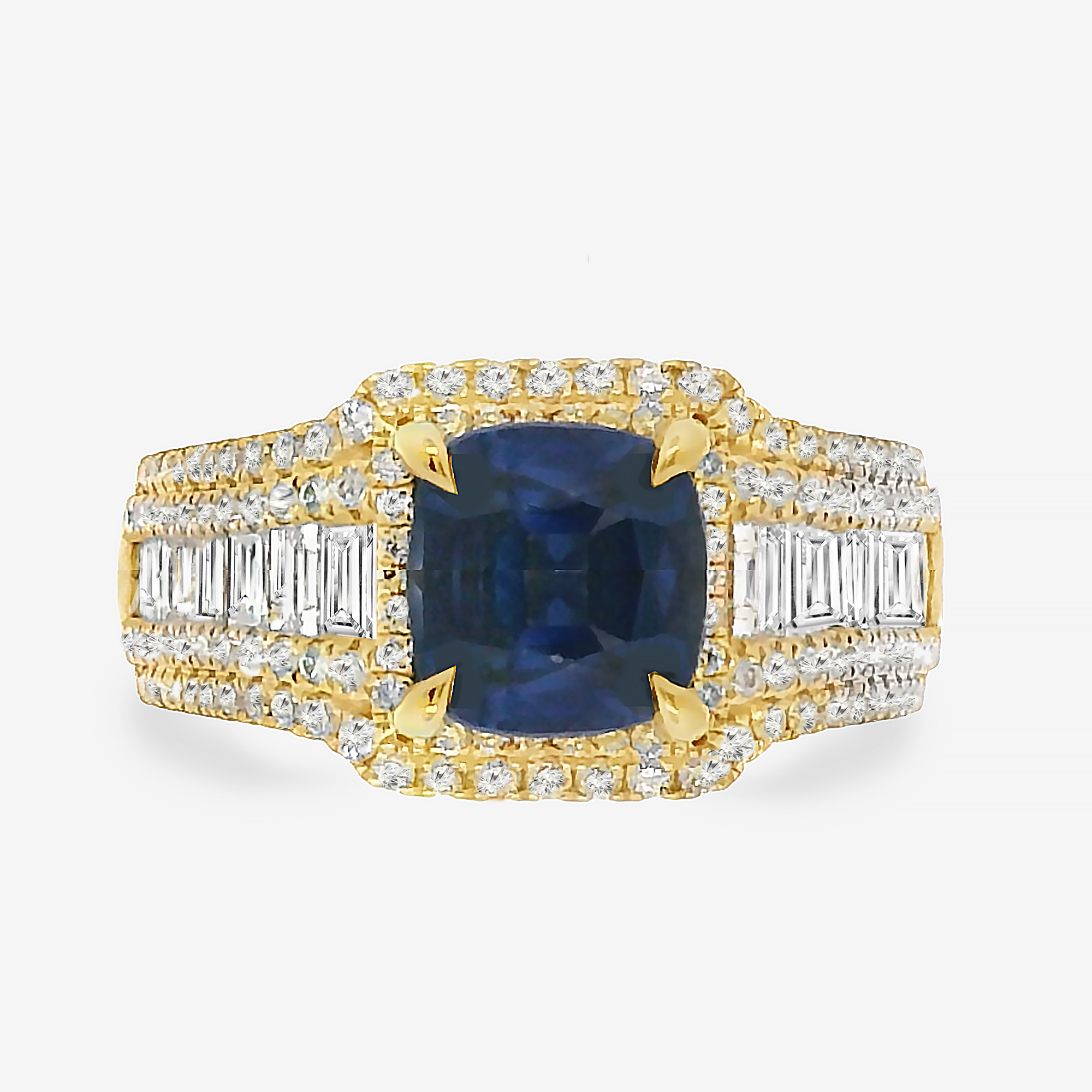 2.05CT Cushion Blue Sapphire & Diamond Ring