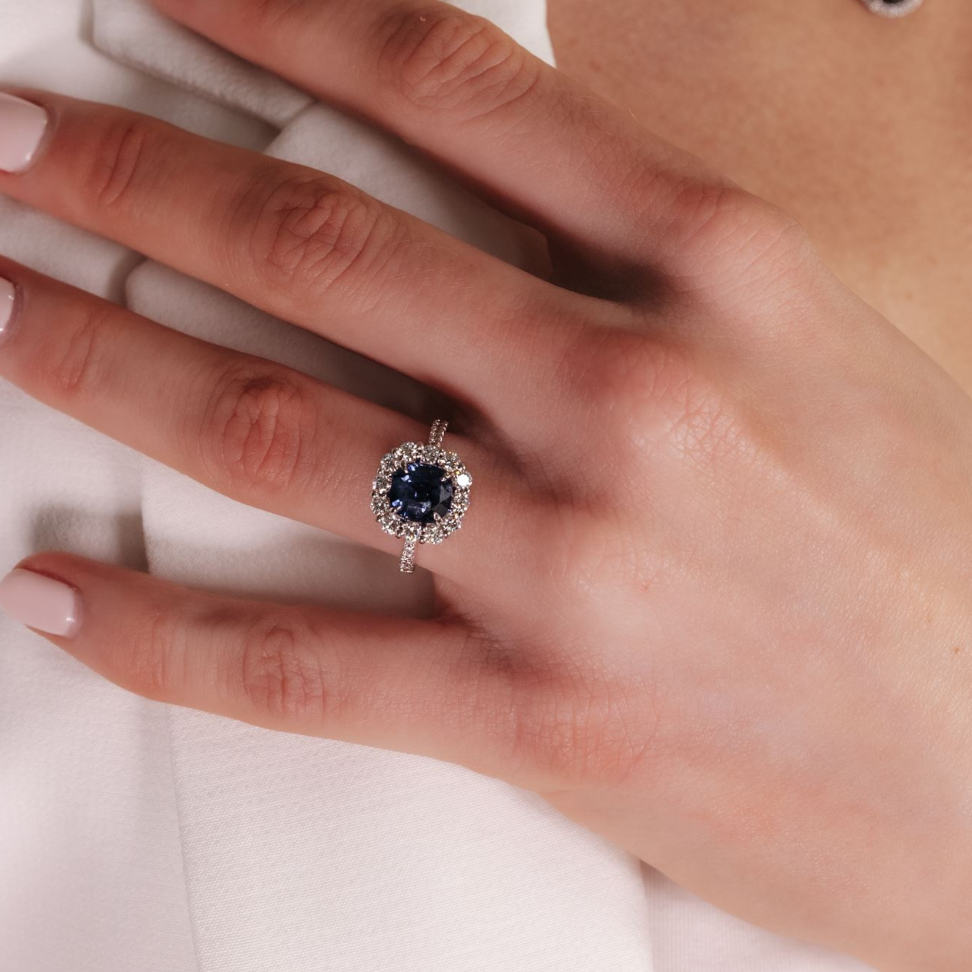 2.04CT Cushion Blue Sapphire & Diamond Ring