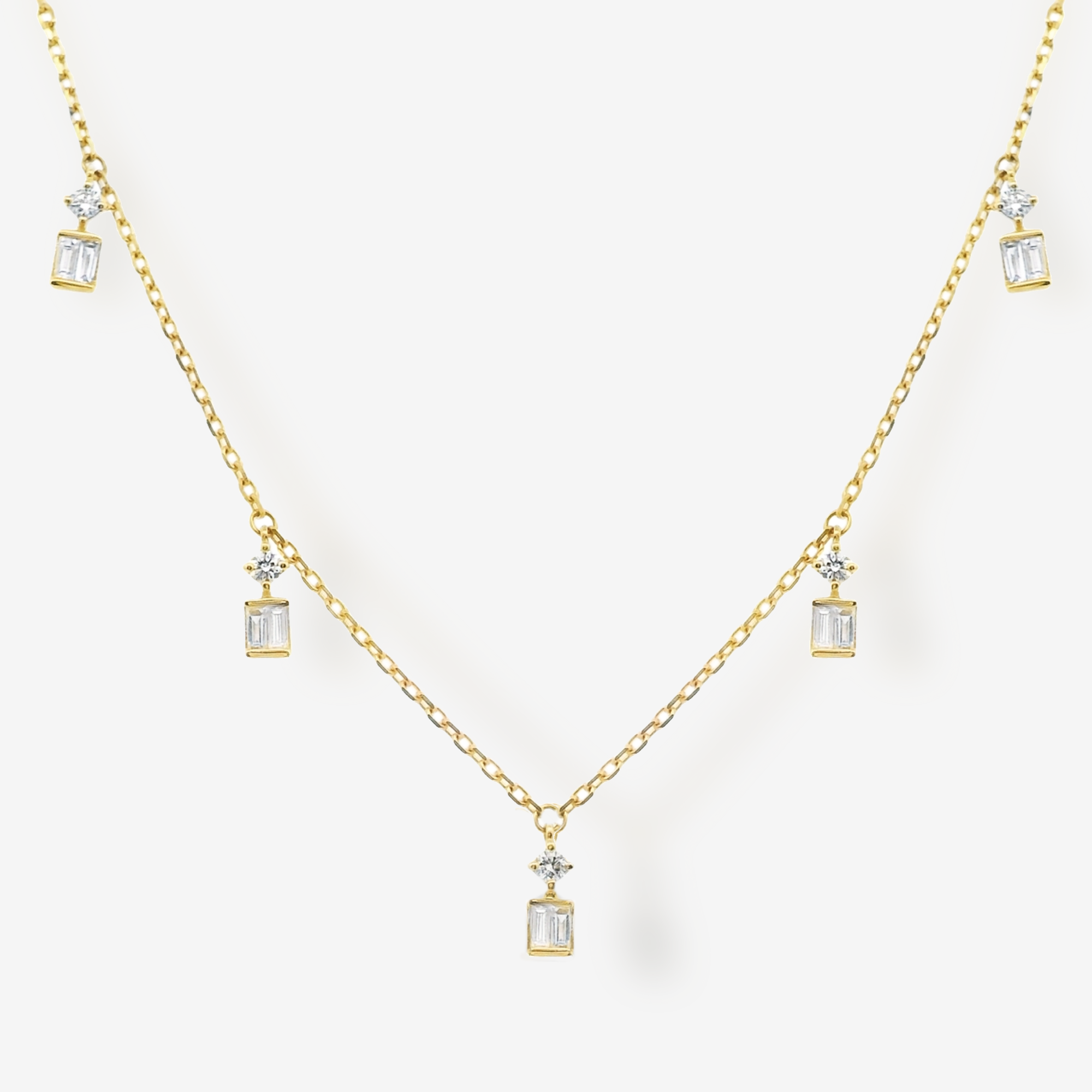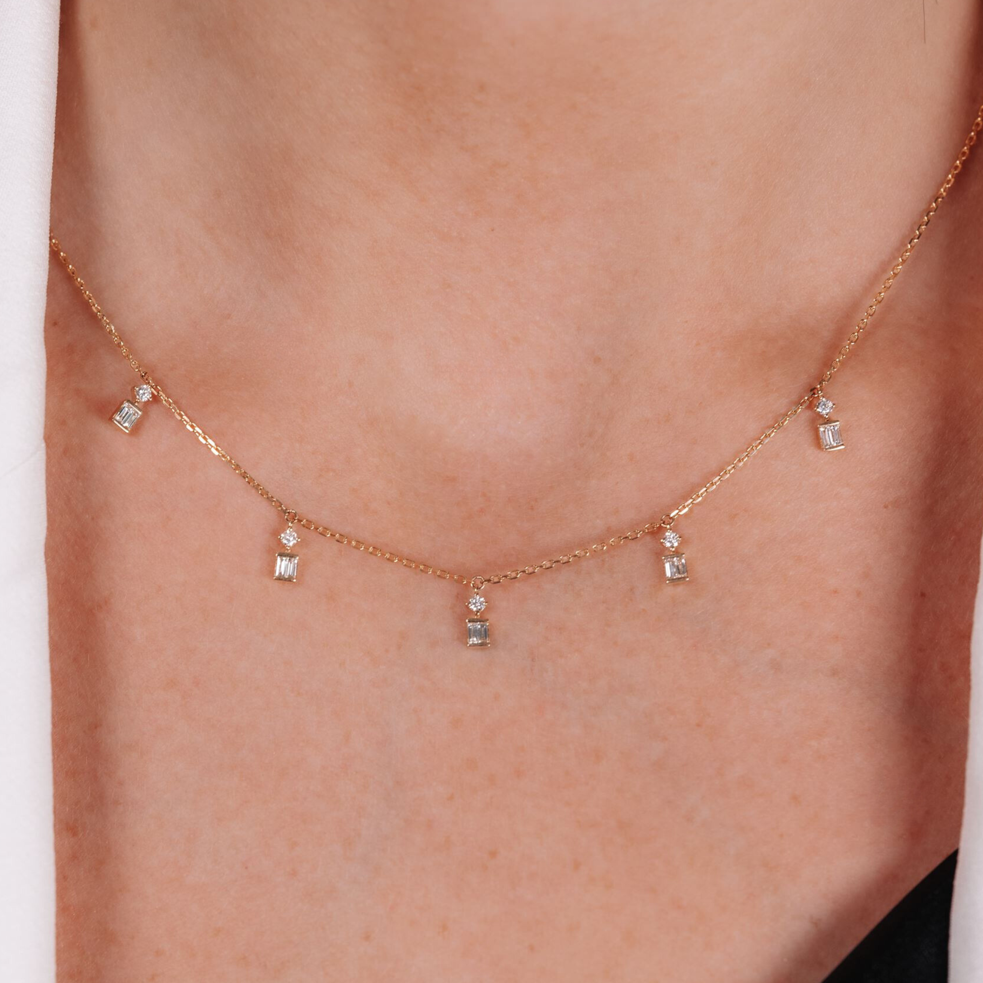 0.40CT Baguette & Round Drops By The Yard Necklace