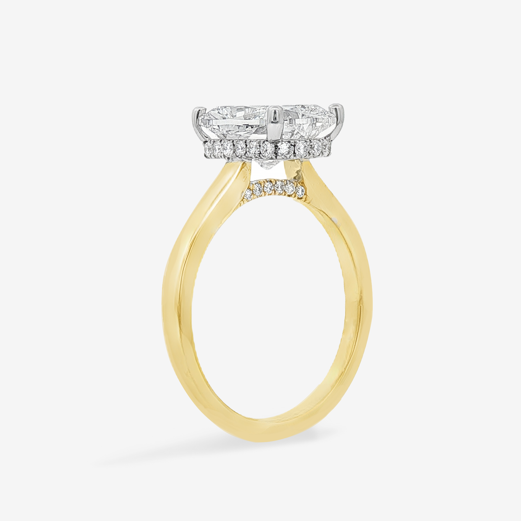 3.09CT Cushion Lab Grown Diamond Lina Solitaire Diamond Bridge Hidden Halo Engagement Ring