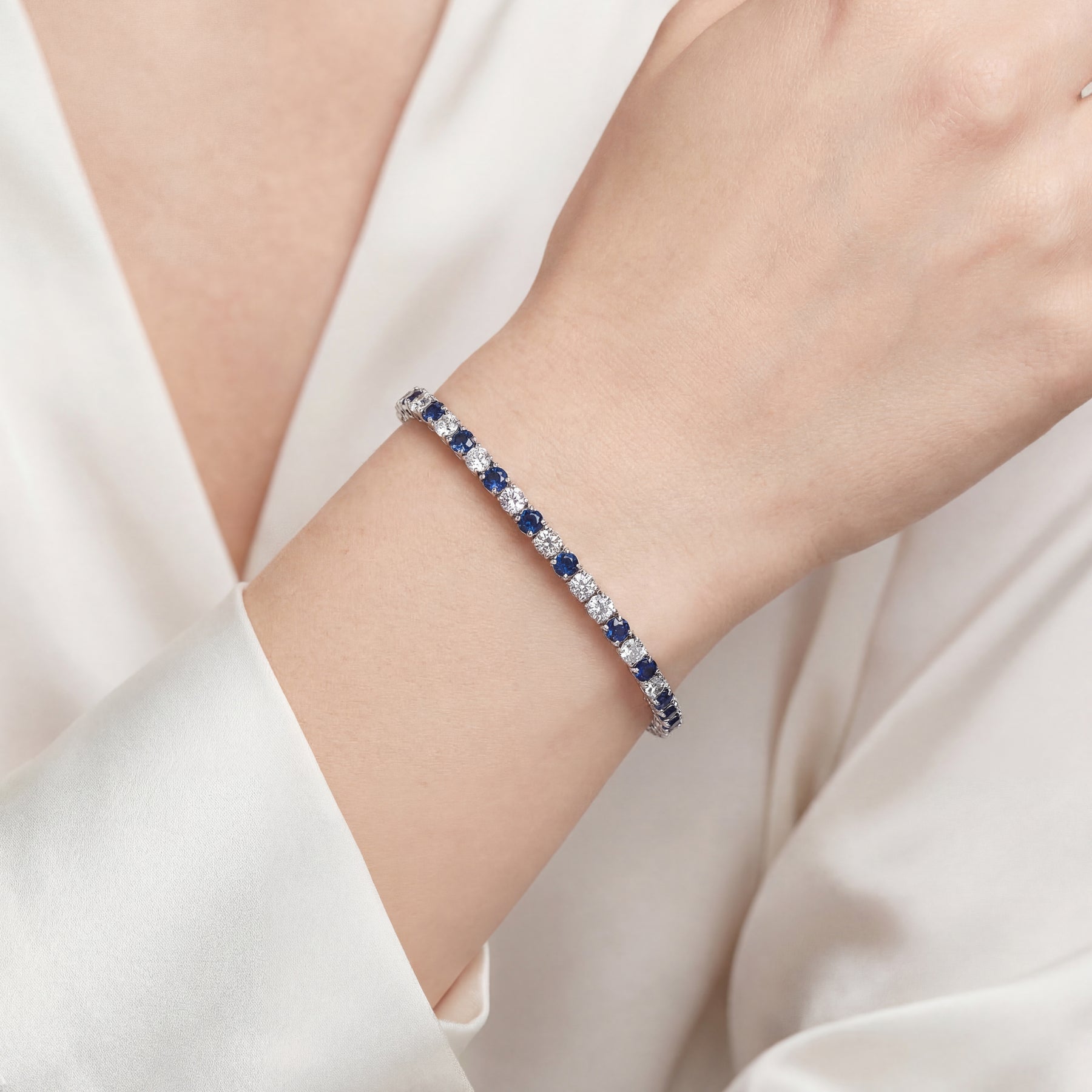 Lab Grown Diamond & Blue Sapphire Tennis Bracelet